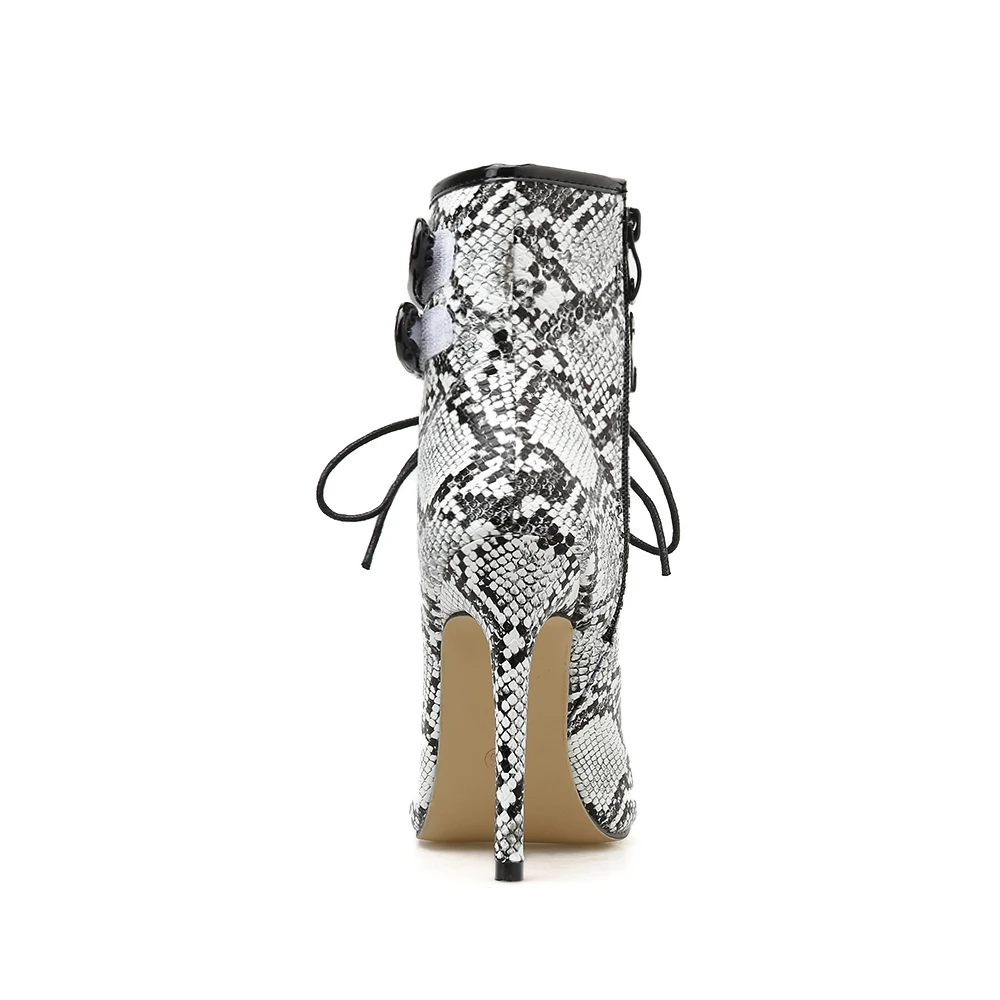 Женские ботинки со змеиным принтом Perixir стильные ботильоны на тонком высоком - купить