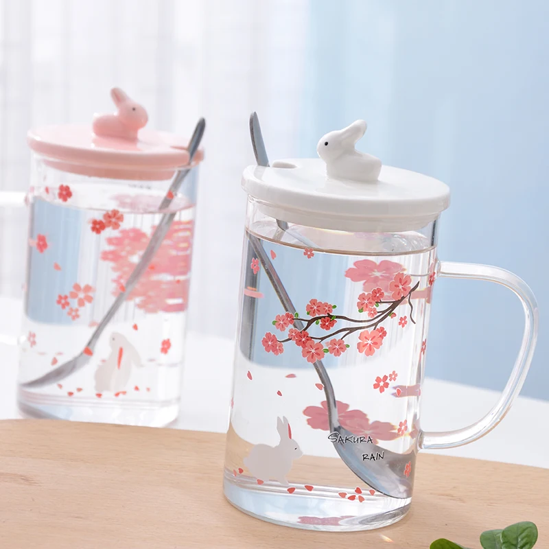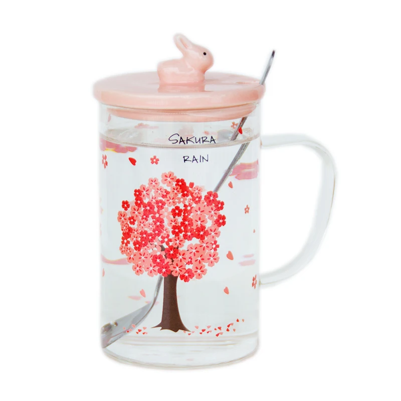 Отзывы о Milk Coffee Mug Cherry Blossom Pattern Heat-Resistant Glass Water Cup Cute Straw Home Office Flower Tea With Lid Spoon Дом и сад
