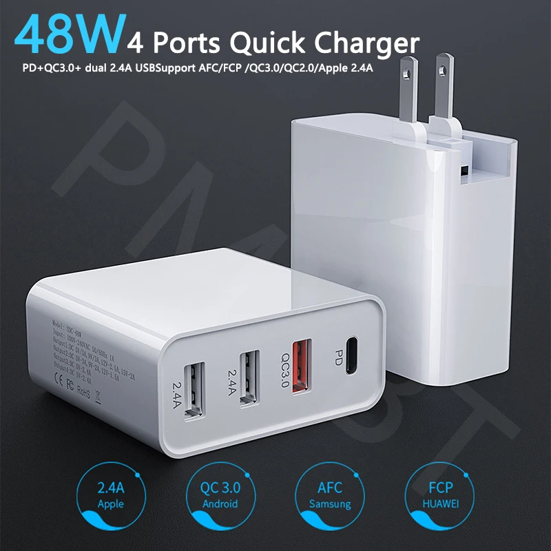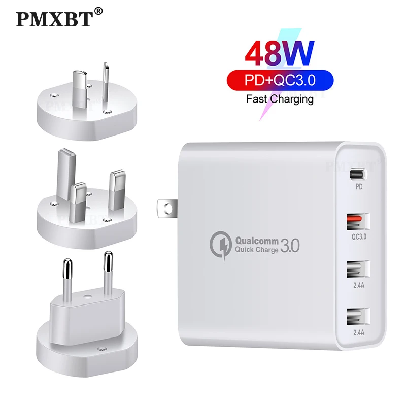 48 Вт PD Type C и 3 USB порта зарядное устройство EU US AU UK адаптер для телефона настенное - купить