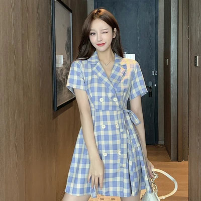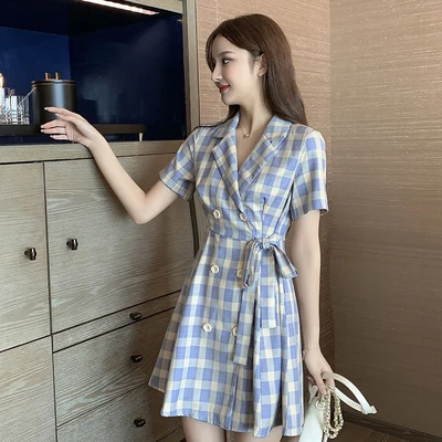 Отзывы о Женское клетчатое платье-блейзер на завязках короткое двубортное платье макси с