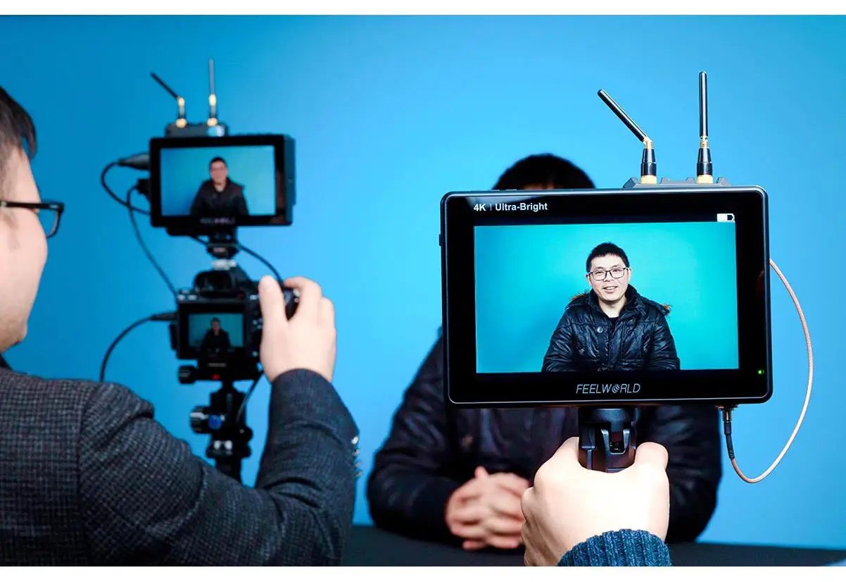 Передача на съемочный контроль одновременно. Без кабеля более гибкий для перехода между сценами легко для наружной съемки.
