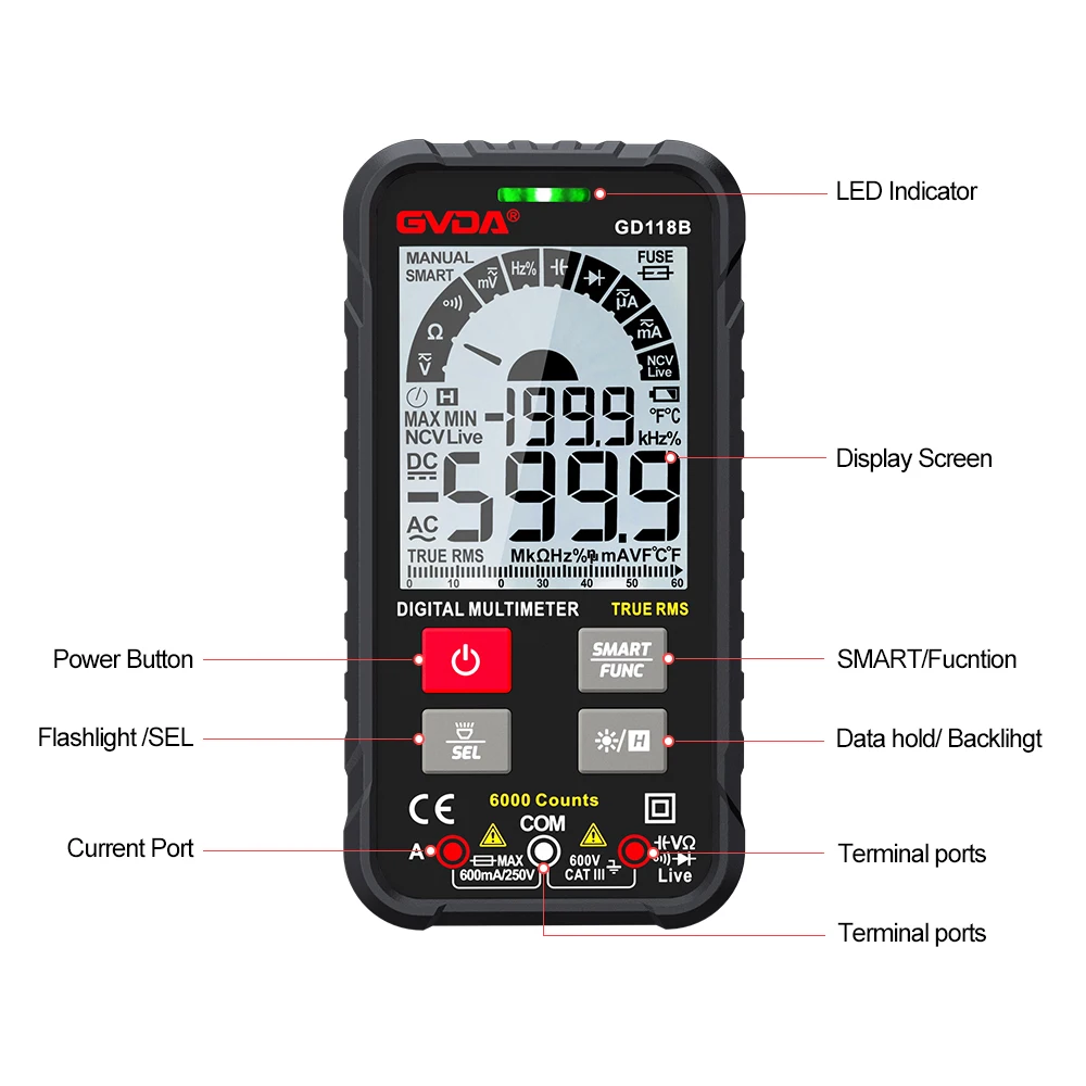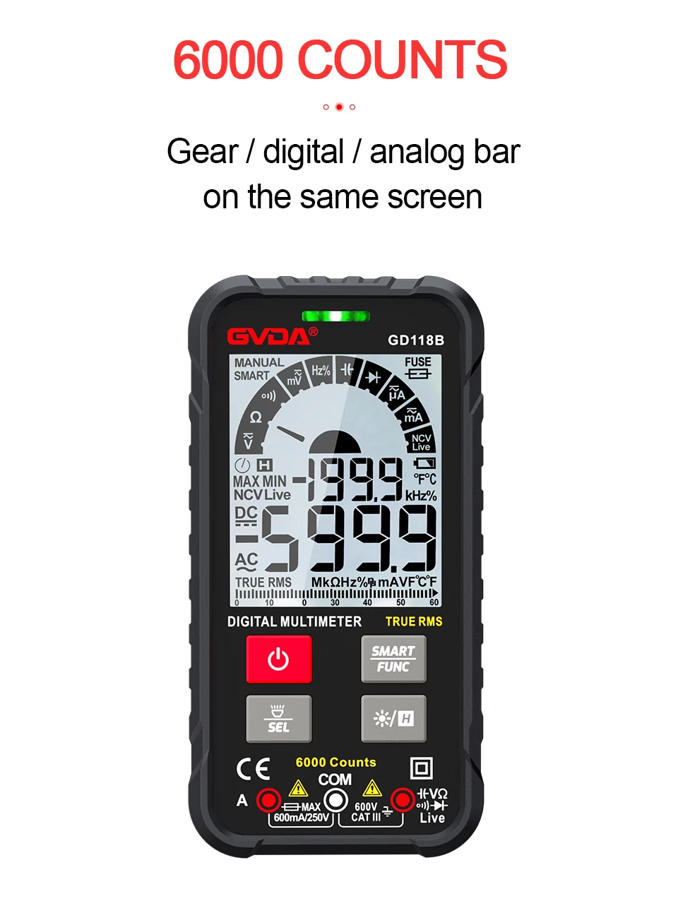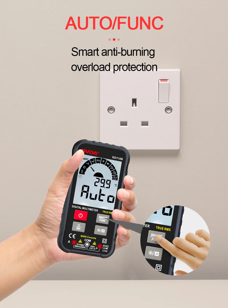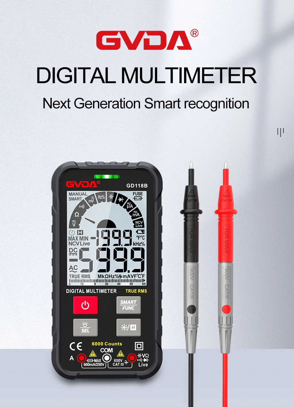 Отзывы о Цифровой мультиметр GVDA измеритель емкости и напряжения True RMS AC/DC Бесконтактный