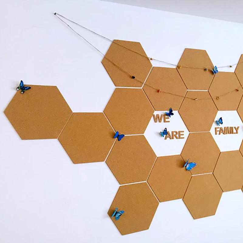 [DIY шестигранные доски для заметок]: Дайте вашему офису, комнате в общежитии или гостиной макияж с шестигранной пробковой стеной, разработанной вами. Держите себя в порядке и делайте это в некотором стиле. В качестве художественной установки вы можете сделать эти доски для заметок. Просто нарисуйте шестигранную Пробковую плитку в ваших любимых цветах, а затем Повесьте их на стену со съемными клейкими полосками. Дизайн почти бесконечен.