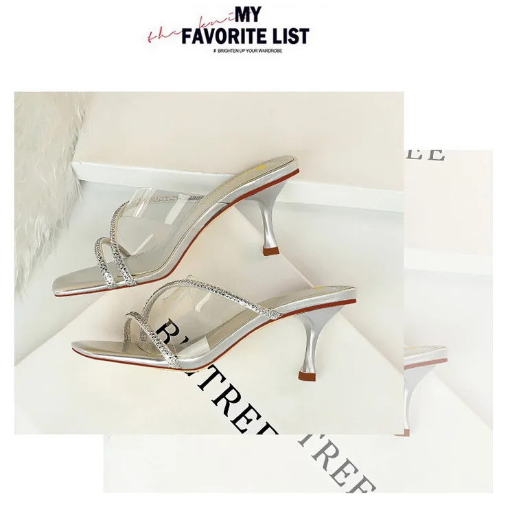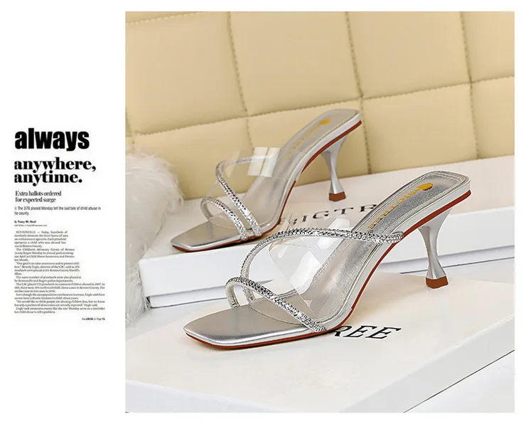 Отзывы о Bigtree пикантные женские босоножки Открытый носок Летние тапочки прозрачная искусственная Стразы каблуке