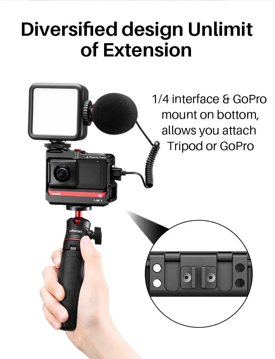 Ulanzi Insta360 One R Aluminum Vlog Cage frame Cold Shoe LED Light Mic Expansion Protection Case Cover For Insta360 Accessories