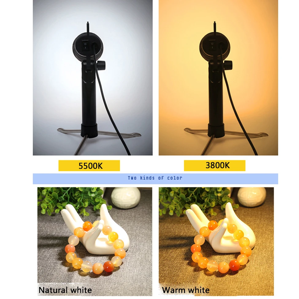Эта светодиодная портативная лампа идеально подходит для настольной фотосъемки. Если вам нужно дополнительное освещение, чтобы добавить профессиональное прикосновение к фотографиям вашего продукта или улучшить видео, эти компактные и складные фонари обеспечат все, что вам нужно для идеального снимка!