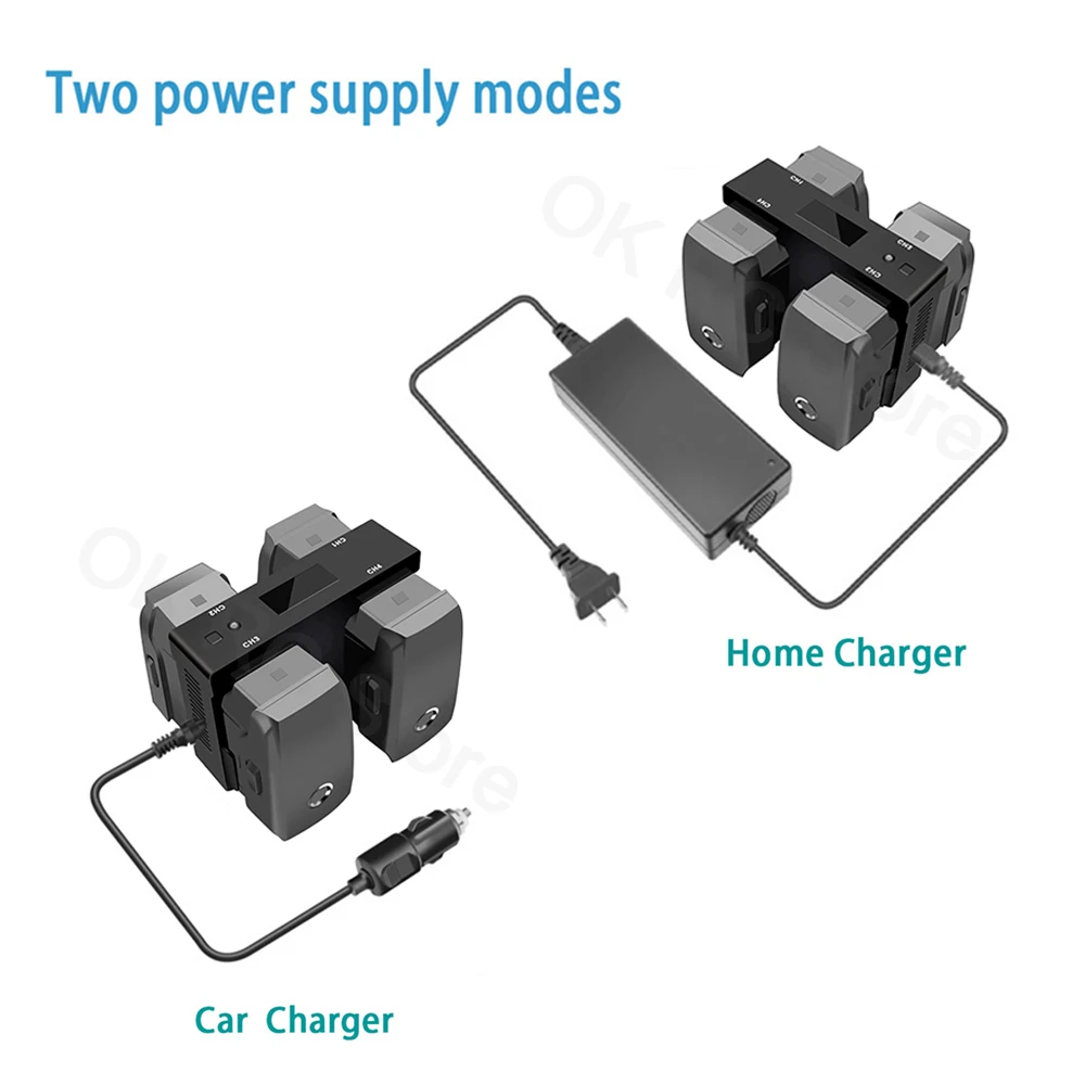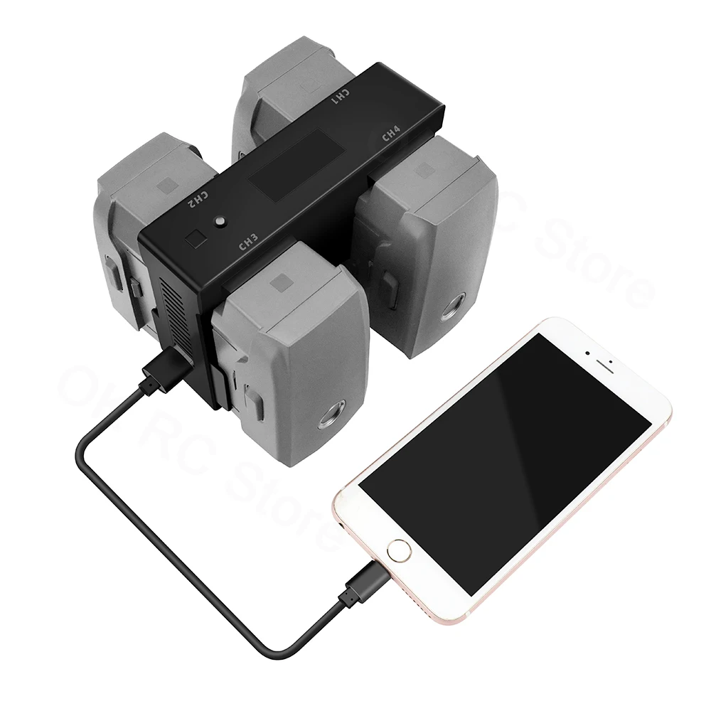Он может заряжать 4 батареи, 1 пульт дистанционного управления (порт USB) или 1 смартфон одновременно.