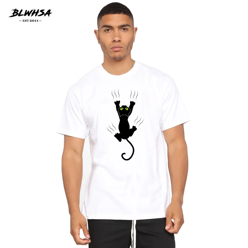 Мужская футболка BLWHSA с принтом кота забавная летняя размера плюс одежда - купить