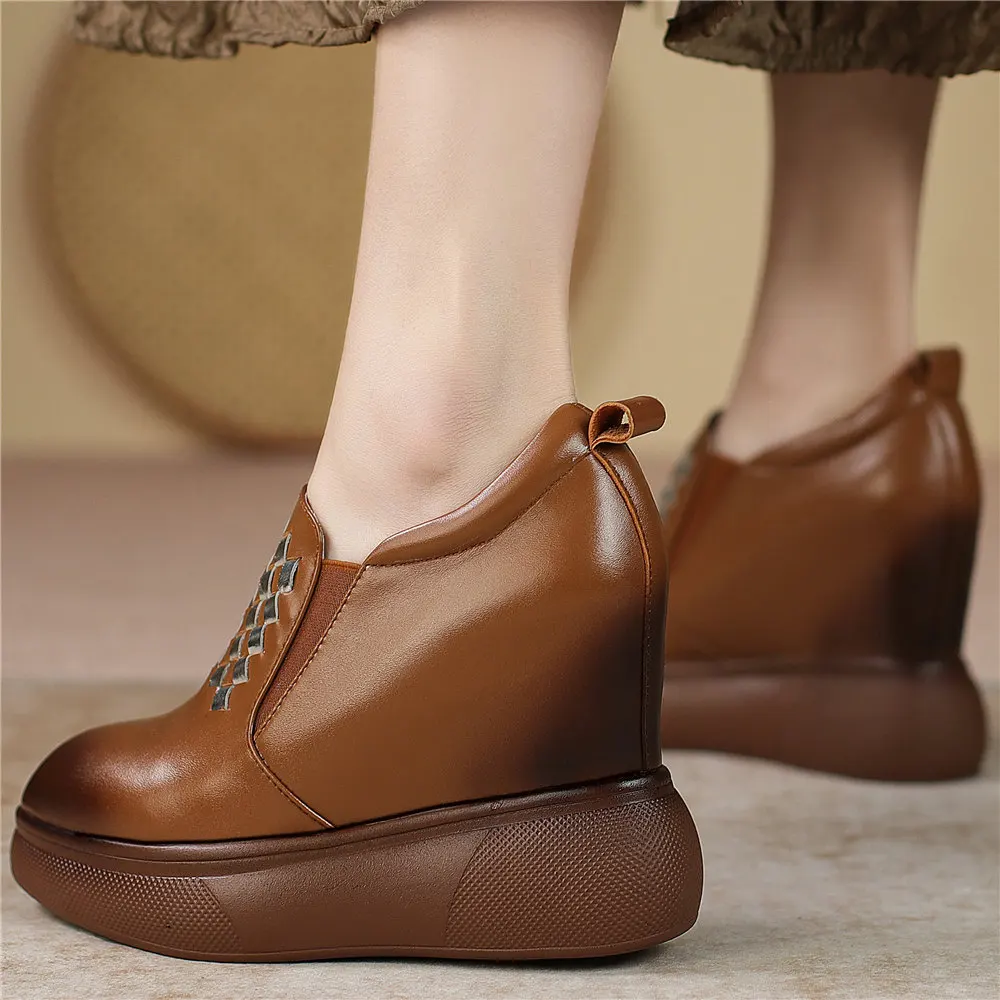 Туфли женские из натуральной кожи туфли-лодочки на платформе и высоком каблуке - купить