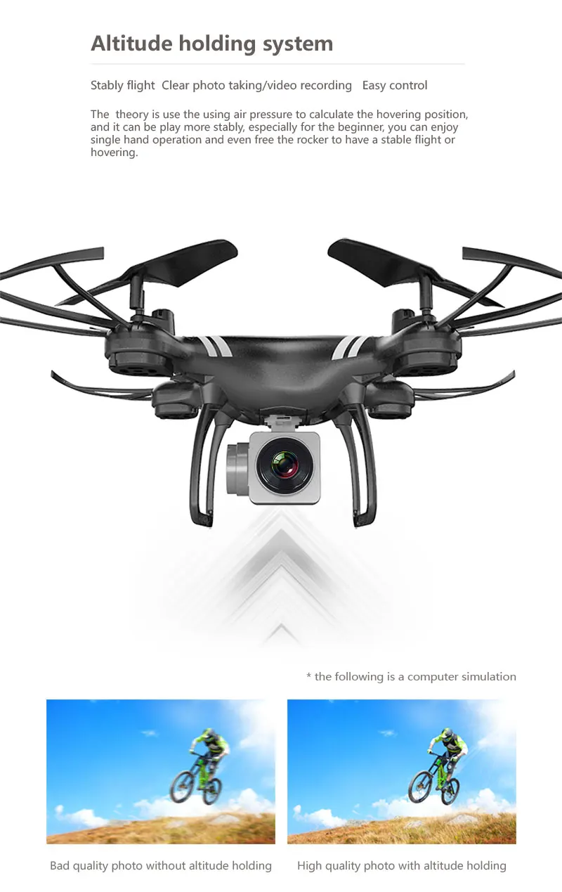 Безголовый режим/3D Flips/переключатель скорости/удержание высоты, парение, светодиодный светильник, возврат одной кнопки, Селфи, широкоугольная камера 1080P