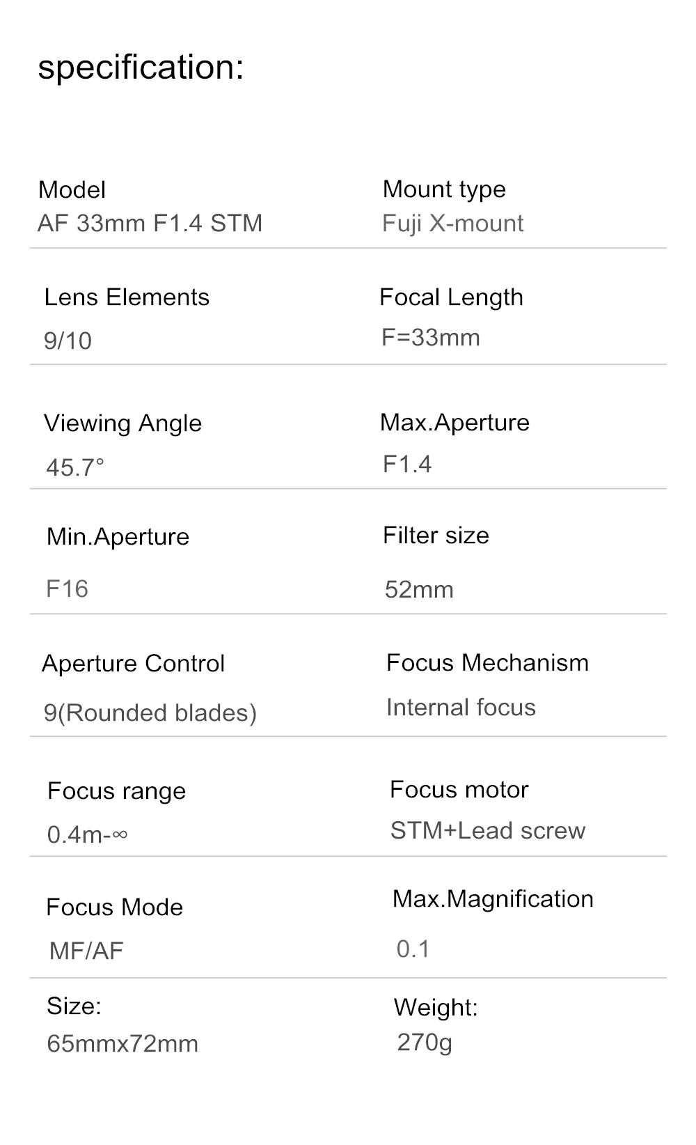 Объектив VILTROX AF 33 мм F1.4 STM Auto Focus prime-это объектив с большой апертурой, предназначенный для камеры Fuji X-mount.