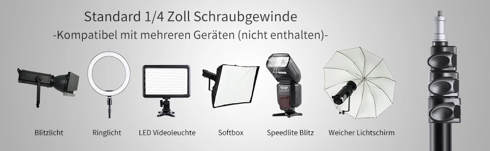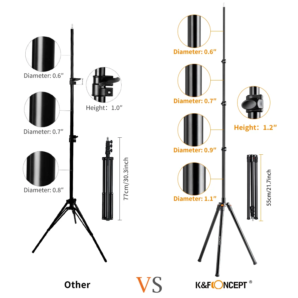 Прочный и легкий люминево-магниевый сплав и максимальный диаметр 27 мм для стойки лампы, его также можно использовать с мешками с песком для достижения большинства требований к нагрузке.