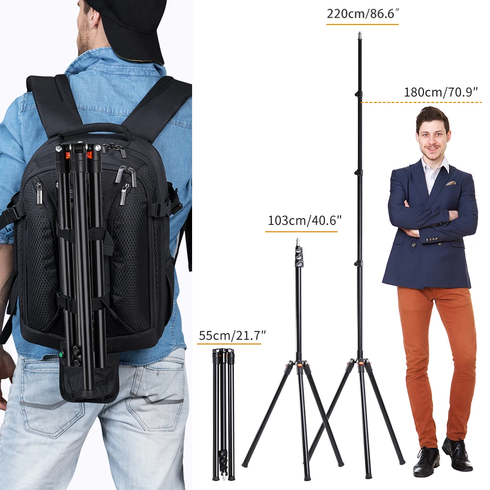 Специальные Реверсивные Ножки штатива светильник подставкой с 4 секциями, высота в сложенном виде составляет всего 55 см/21,7 дюйма, портативный и удобный для активного отдыха.