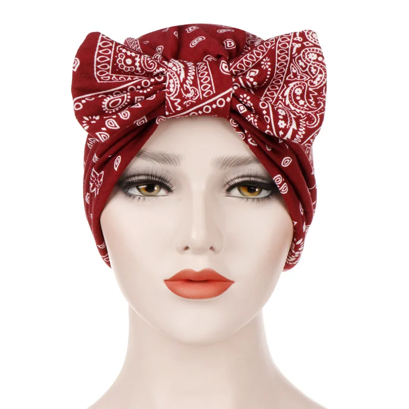 Fashion Muslim Women Cashew Print Hijab Turban Hat Detachable Bowknot Headband Indian Caps Headwraps Ladies Hair Turbante Mujer - купить