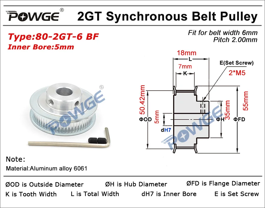(The 80Teeth 2GT Pulleys have bore diameter 5mm)