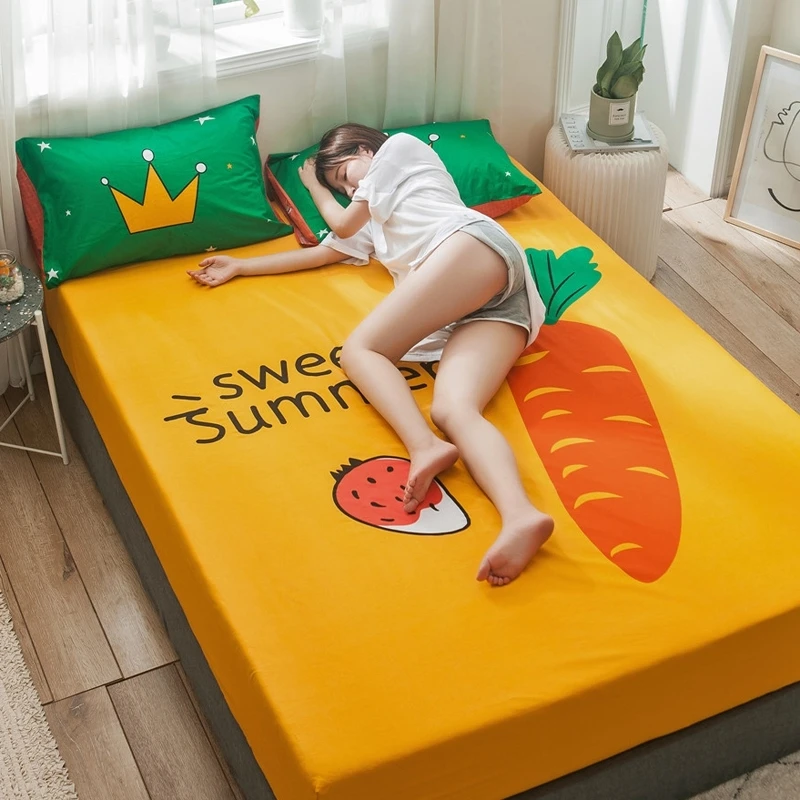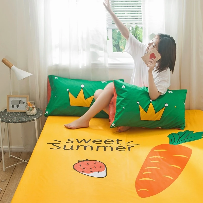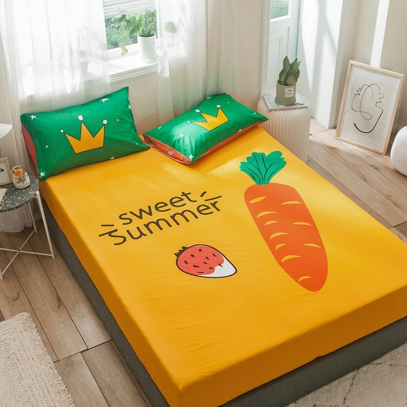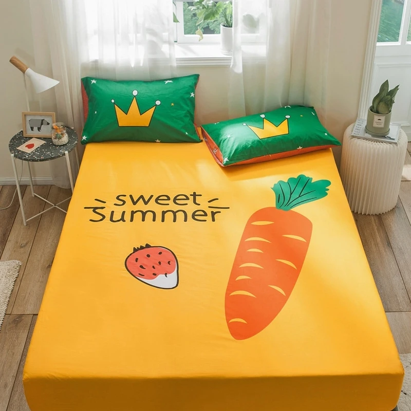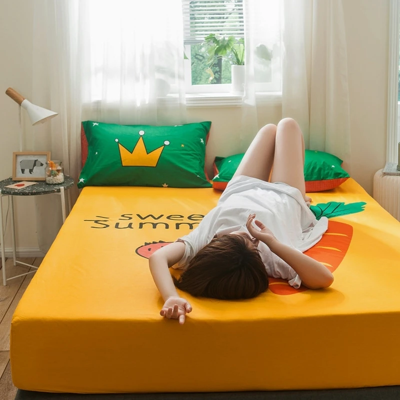 Облегающий чехол, 100% хлопок, желтый цвет, простыни с принтом, эластичная лента, полное покрытие, простыня, мультяшный рисунок, чехлы Yaapeet
