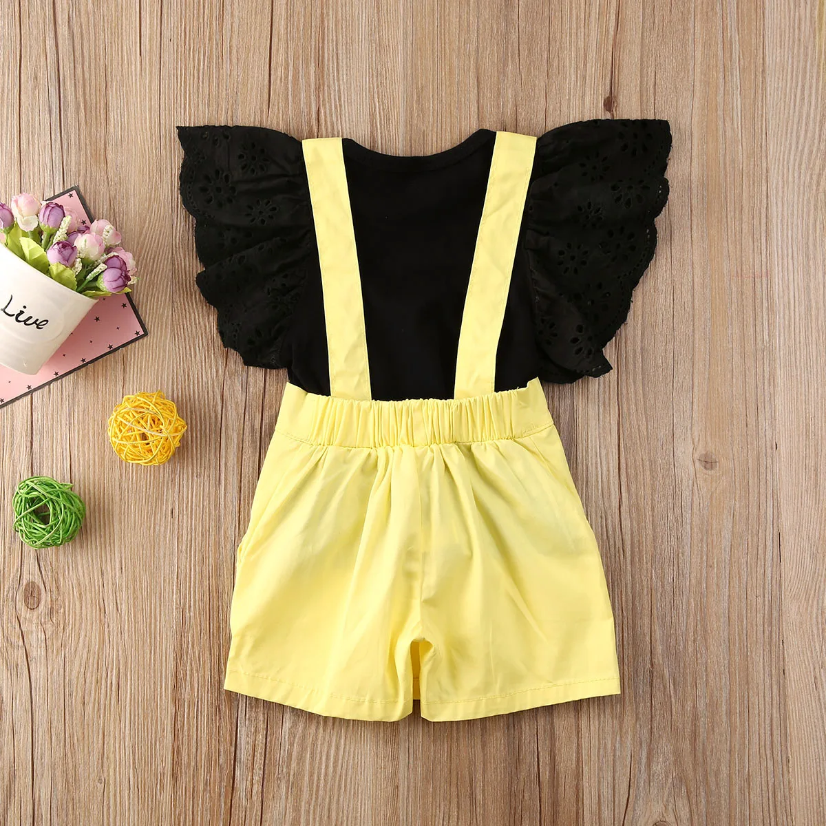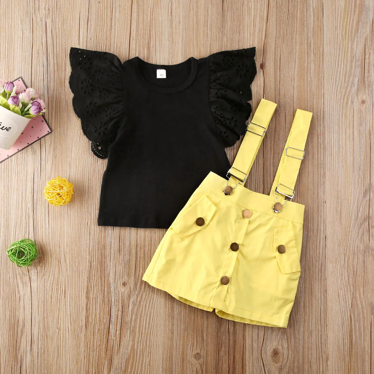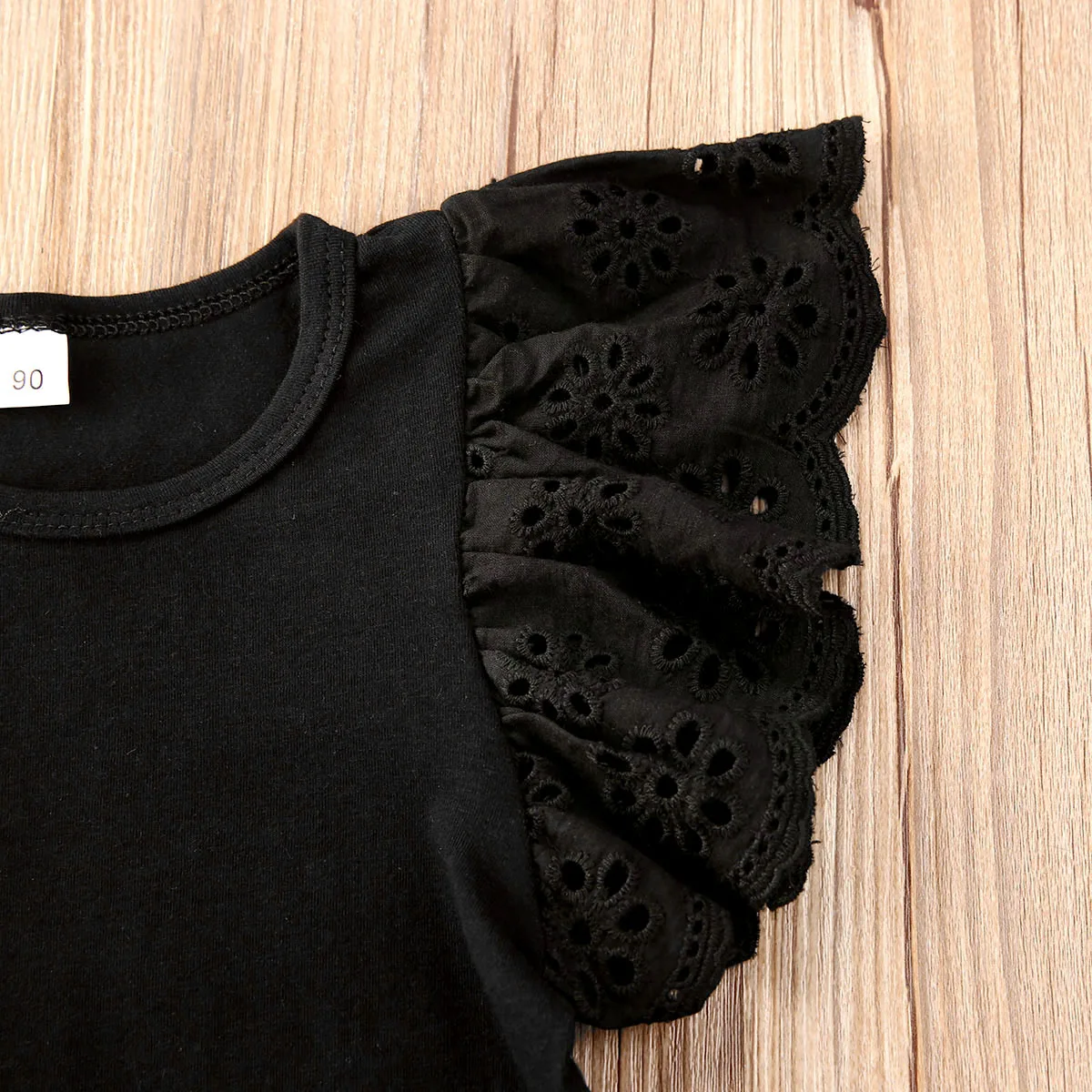Комплекты одежды для девочек 2-7 лет кружевная черная футболка с коротким рукавом - купить