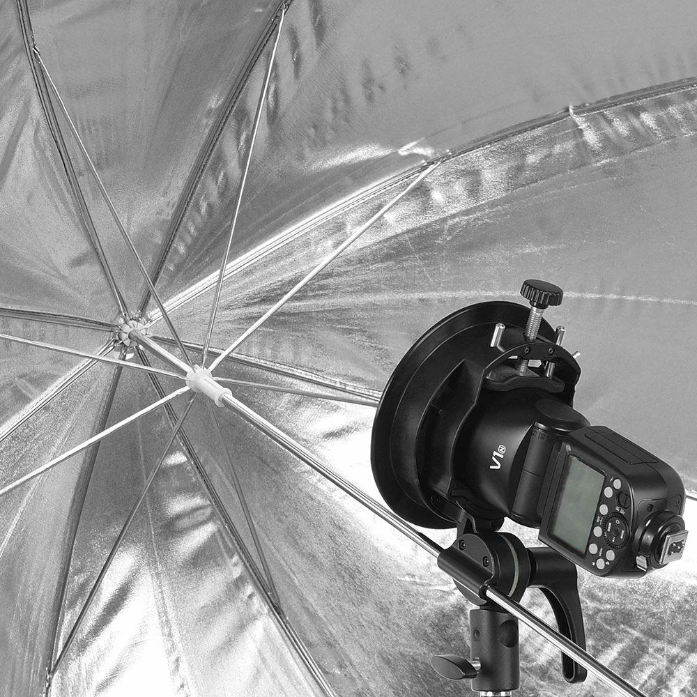 Функции: с креплением Bowens, скоростным кольцом, входом зонта, регулируемой ручкой направления, горизонтальной подвижной способностью.
