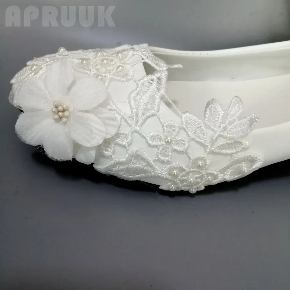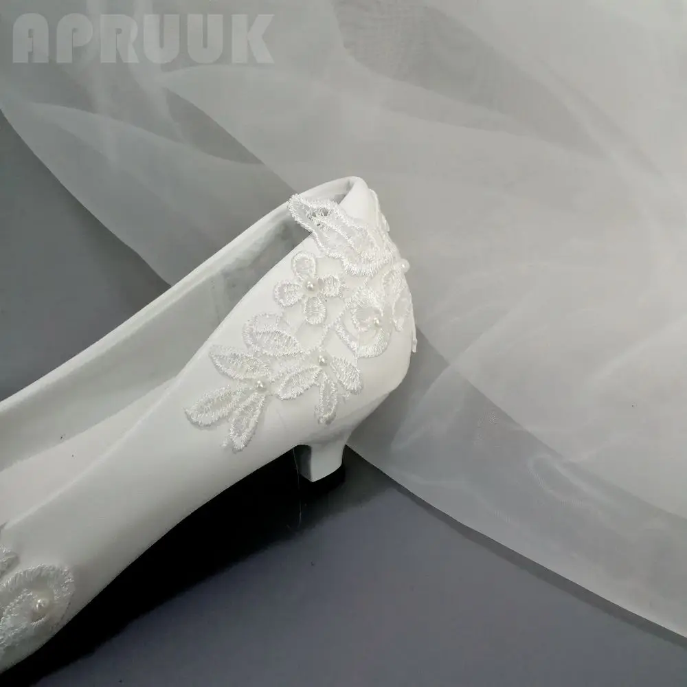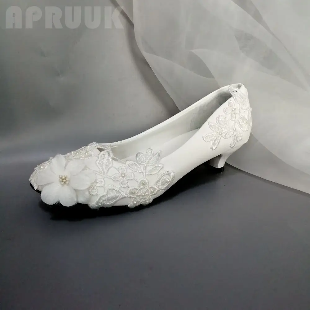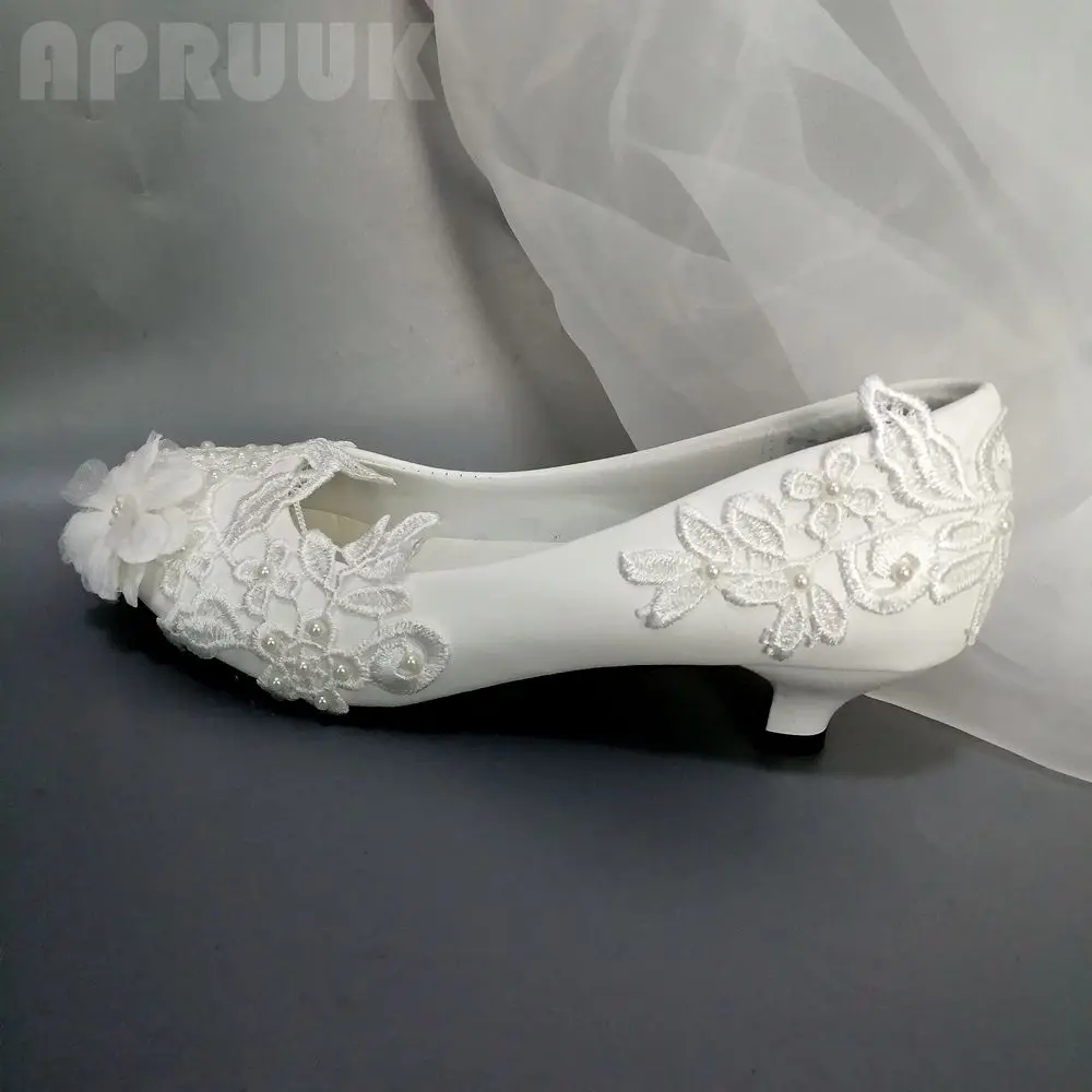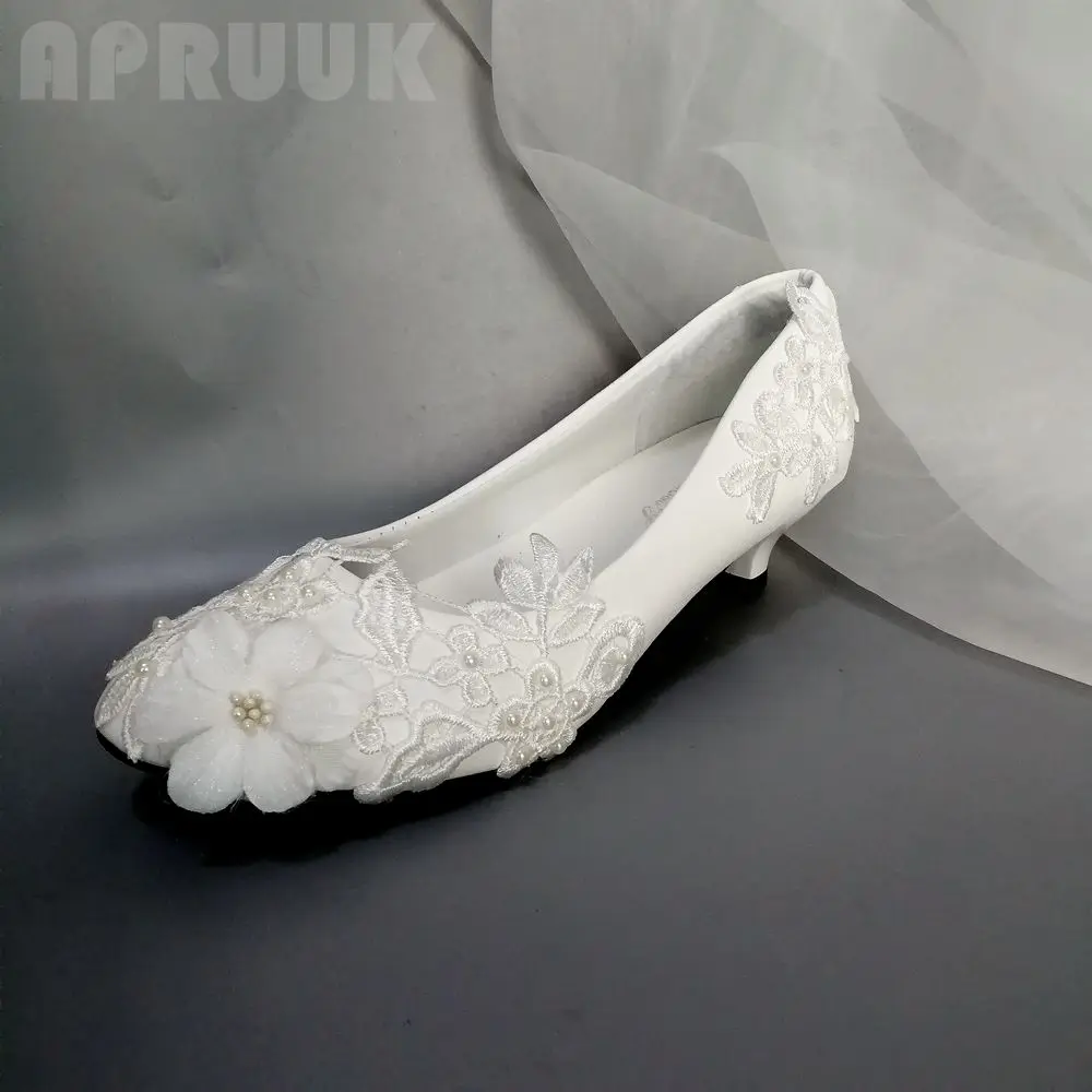 Белые свадебные туфли на низком каблуке с кружевом Женские ручной работы без - купить