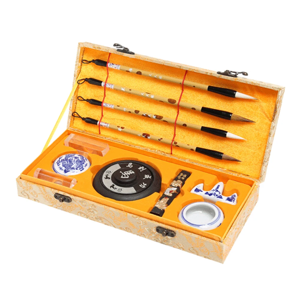 Китайская каллиграфия кисточки для письма чернильная палочка каменная прокладка держатель штампа шайба набор