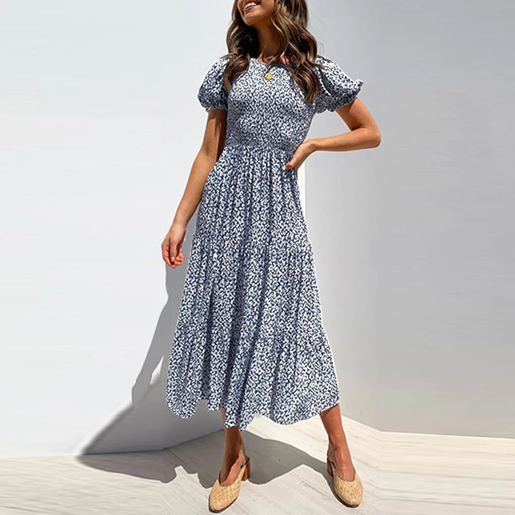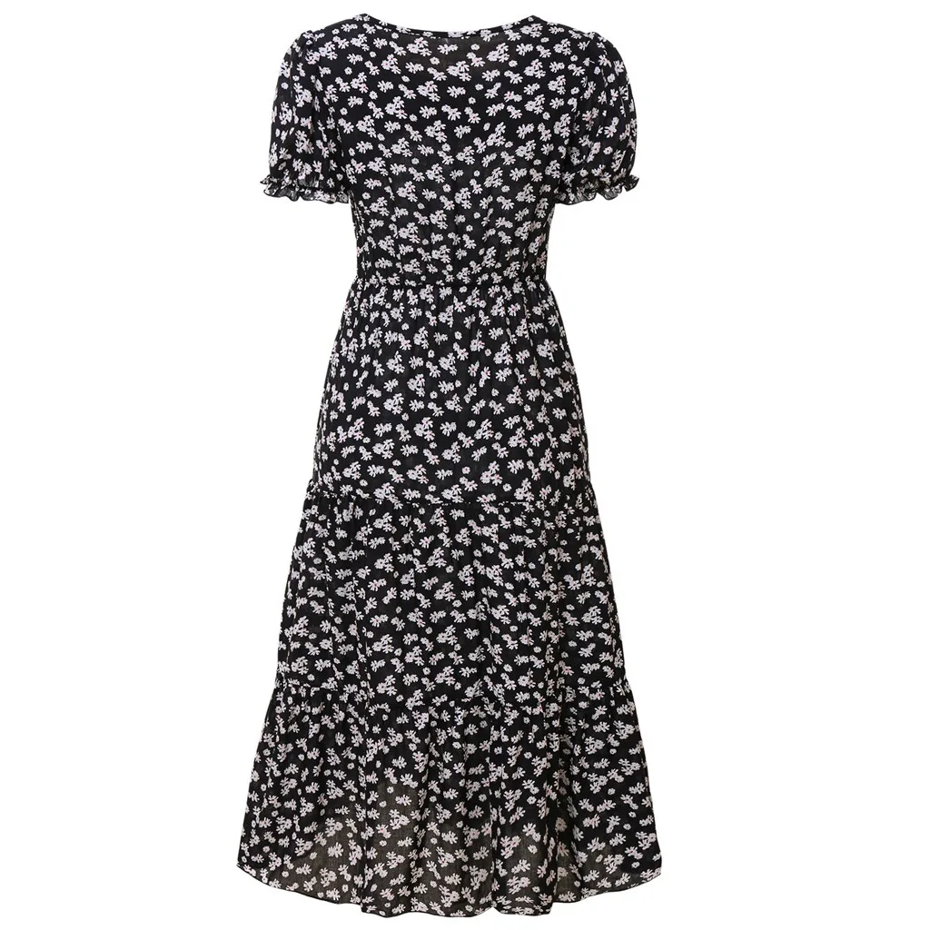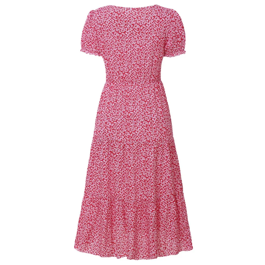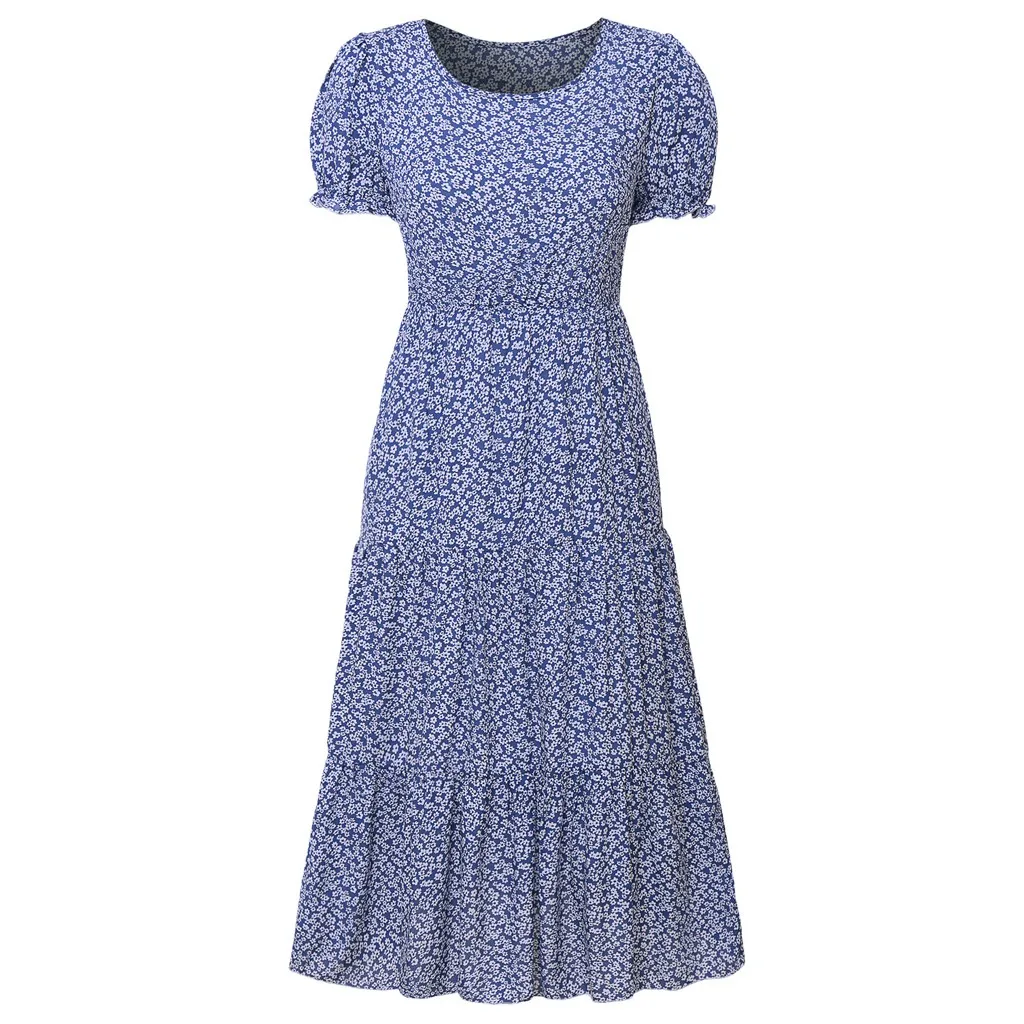 Женское повседневное шифоновое платье с круглым вырезом и цветочным принтом, летнее платье средней длины с коротким рукавомПожалуйста, проверьте таблицу размеров перед заказом. Если вы не уверены в размере, пожалуйста, отправьте нам сообщение.