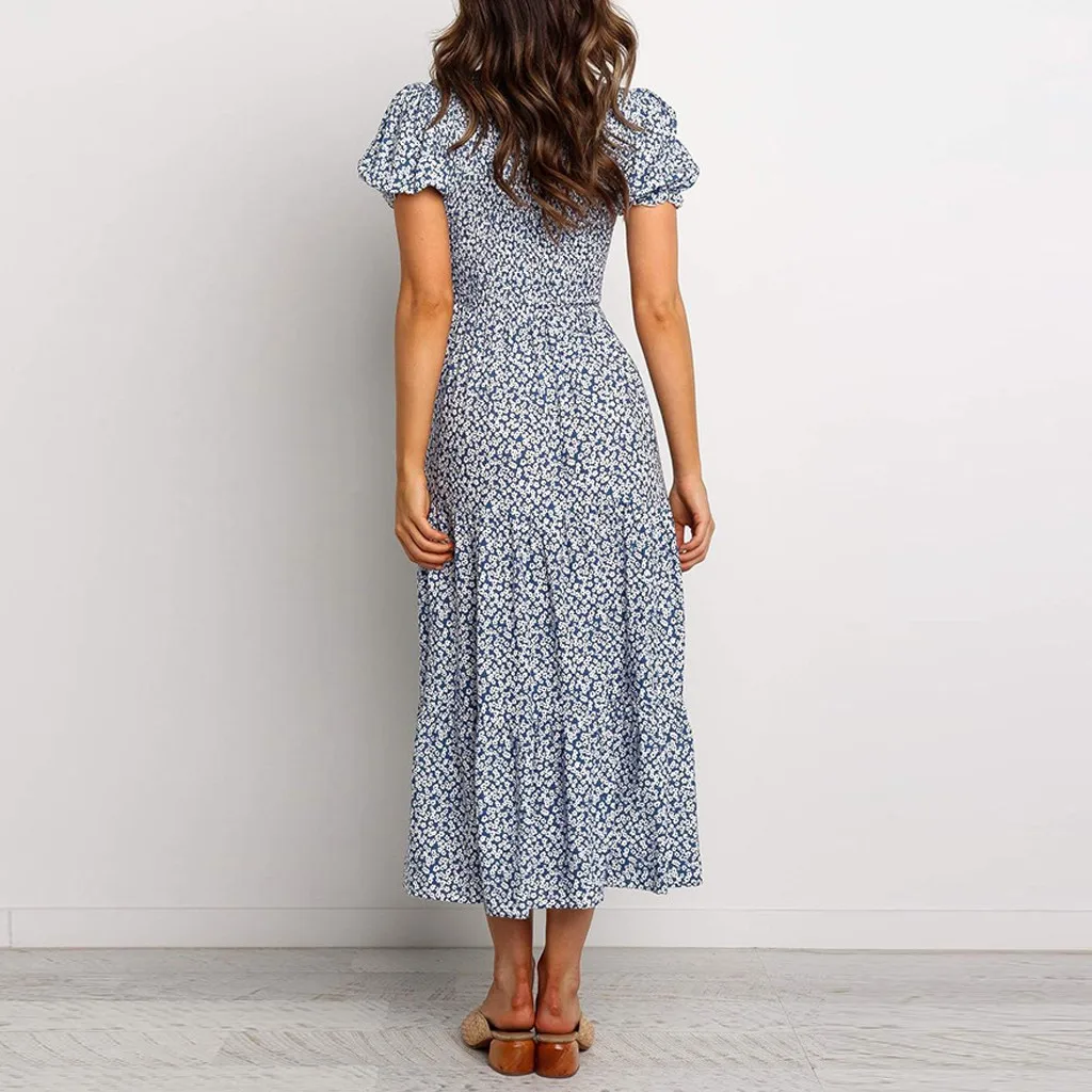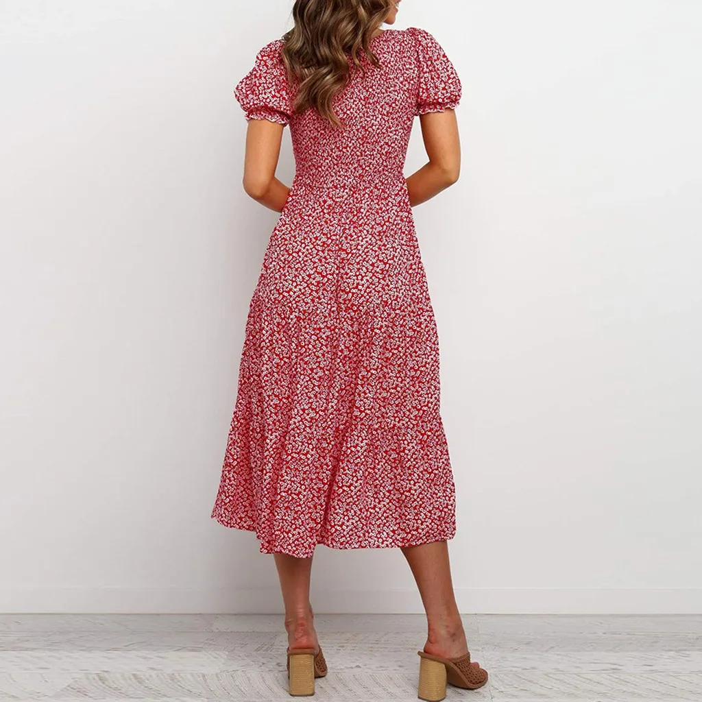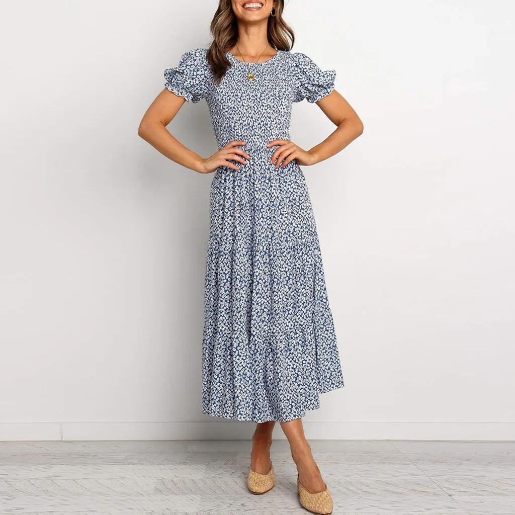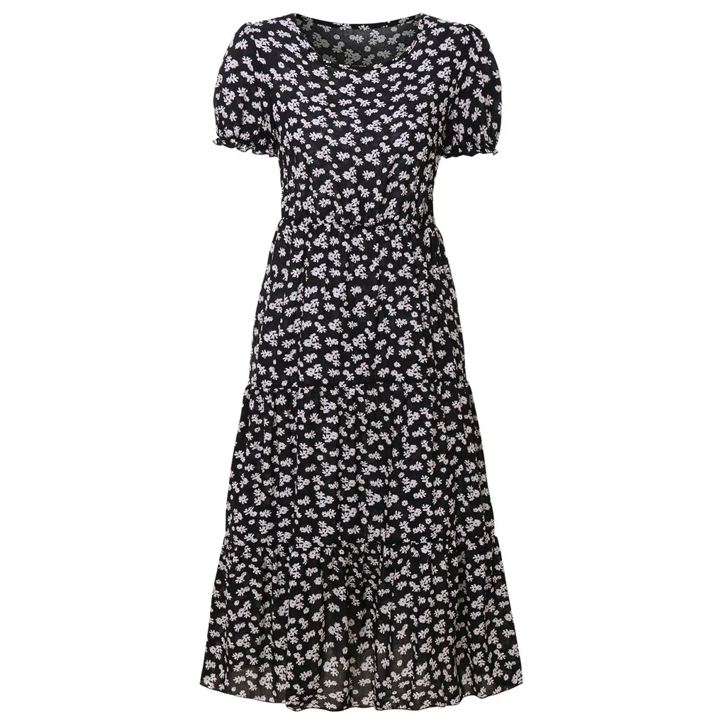 Женское повседневное шифоновое платье с круглым вырезом и цветочным принтом, летнее платье средней длины с коротким рукавомПожалуйста, проверьте таблицу размеров перед заказом. Если вы не уверены в размере, пожалуйста, отправьте нам сообщение.