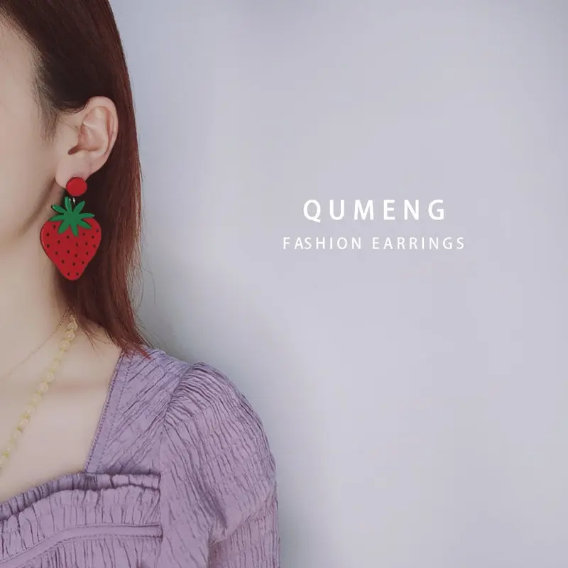 QUMENG новые европейские и американские фрукты модные длинные серьги гвоздики - купить