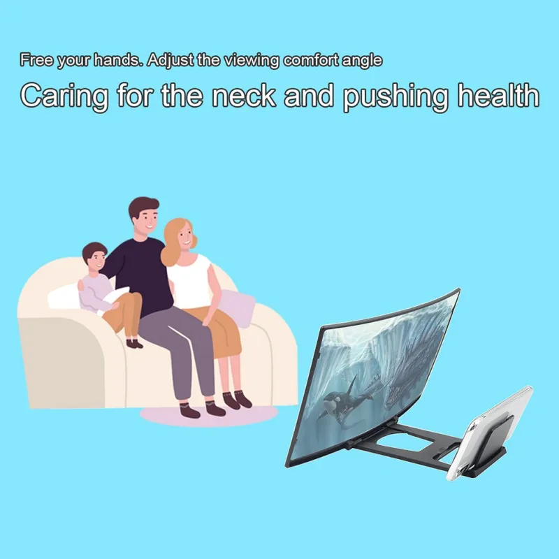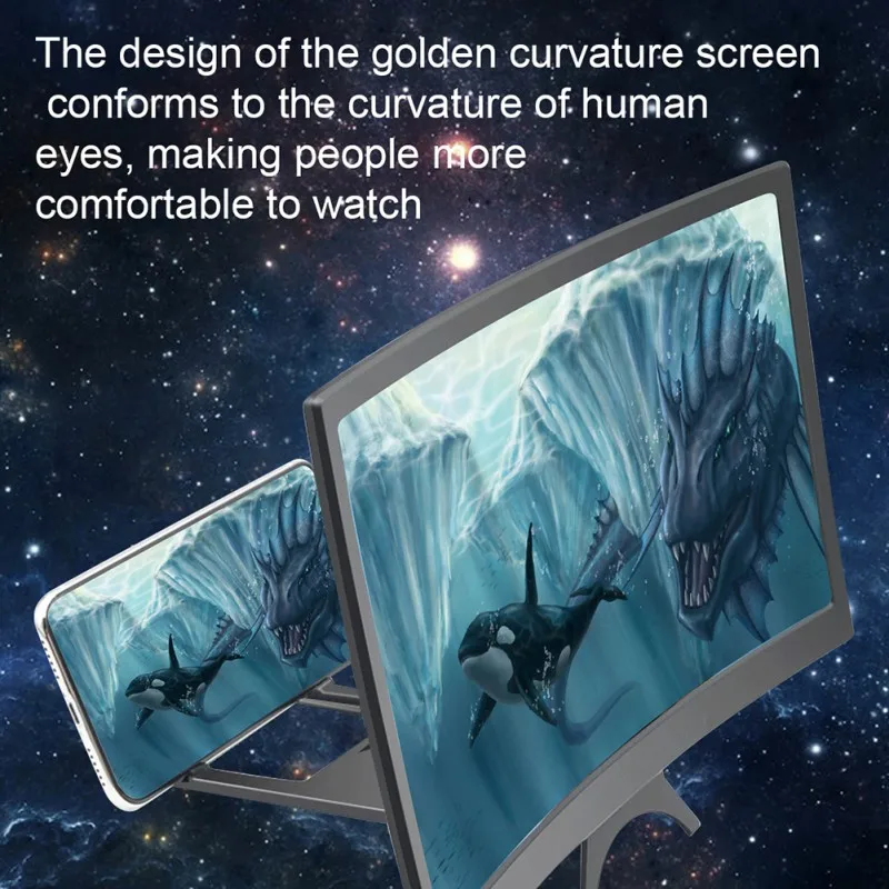 3D изогнутое увеличительное стекло для экрана телефона * 12 дюймов изогнутый экран Лупа на мобильный телефон может эффективно увеличить мобильный телефон экран в 2-3 раза. * Уникальный дизайн: изогнутый дизайн экрана, полностью соответствует кривизне человеческого глаза, более удобно видеть. * Экран не деформируется легко: даже если вы заставите экран сползать, но когда он будет выпущен, экран все равно будет восстановлен до изогнутого экрана * прост в использовании: подходит для iPhone и большинства Android.