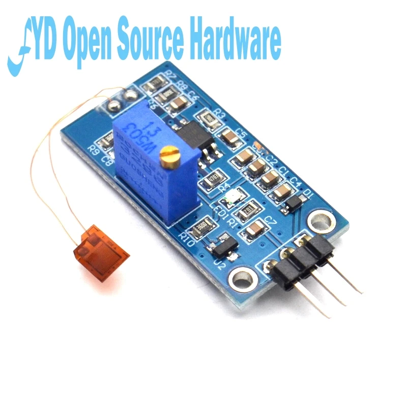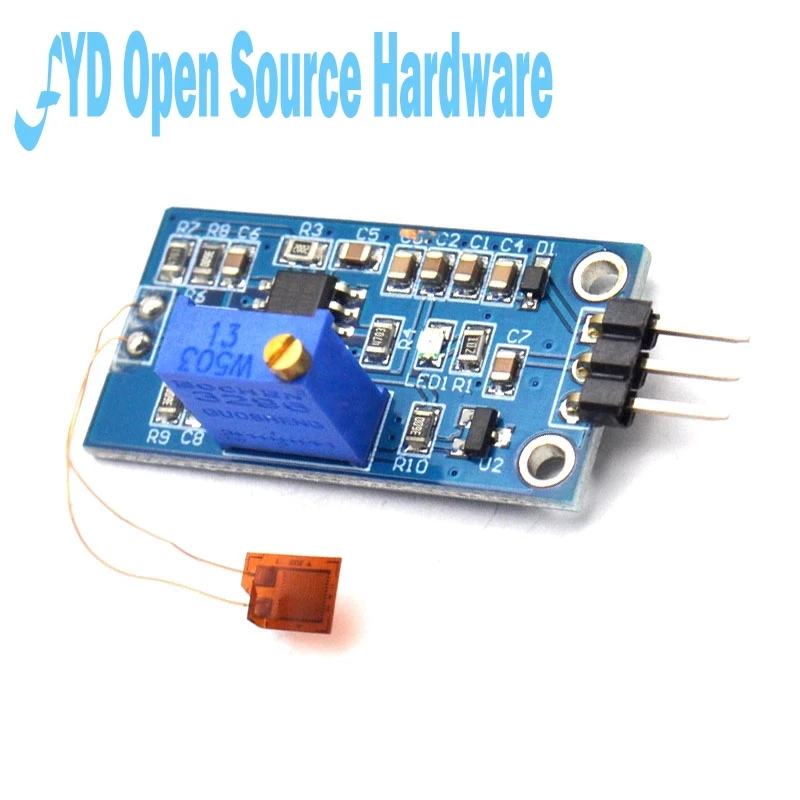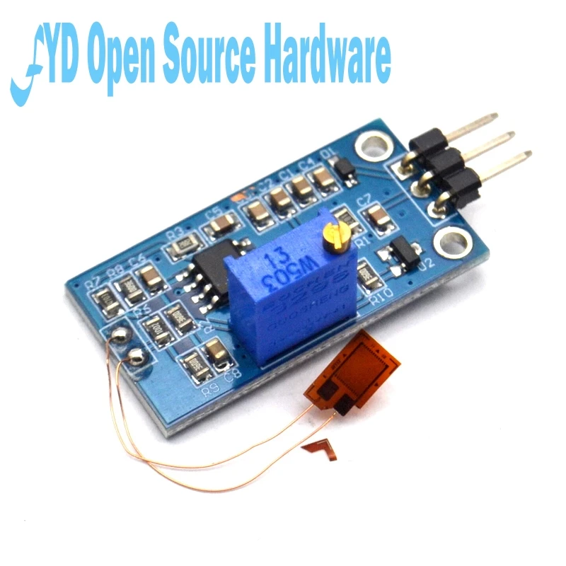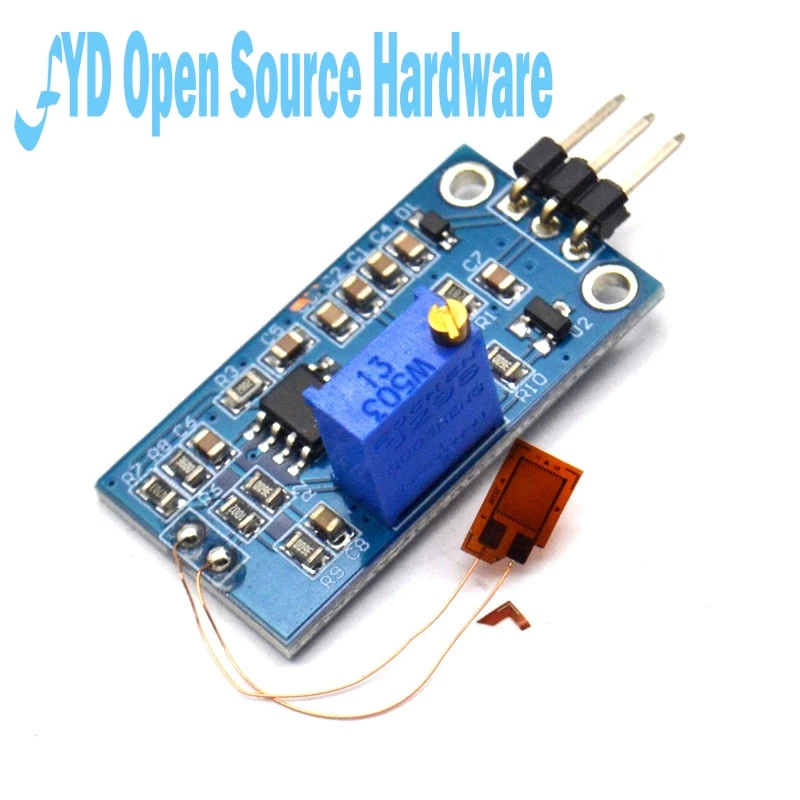 1. Элемент введенияМодель:BF350-3AA / 1.5AAGage Factor: 2,0Напряжение: 2%Провода сетки: длинныеXШирина2x3.5ммРазмер подложки: длинаXШирина 5X4.5ммПодложка: Модифицированная фенольная подложка.Материал проволоки: константанСопротивление: 350 ОмУсталость жизни:> 10000000Флюс: Обычный припой канифоли Принцип работы тензодатчика сопротивления основан на эффекте, создаваемом деформацией, т. Е. Когда проводник или полупроводниковый материал механической деформации под действием внешней силы, которая изменяет соответствующее значение сопротивления, феномен, известный как "деформационный эффект." Манометр, прикрепленный к измеряемому объекту, таким образом, чтобы измеряемое напряжение было согнуто вместе, чтобы металлическая фольга на внутренней стороне с деформацией изгиба. Многие металлы во время механического сопротивления изгибу меняются соответственно. 2. ВведениеНапряжение: 5 В~ Защита от обратного диода (для предотвращения обратной мощности) Плата с синим светодиодный индикатором питанияАналоговый выходУгол изгиба 0-30Чем выше напряжение, тем выше кривизна на выходеС нулевым потенциометромПотенциометр может регулировать выходное напряжение пускаАналоговый выход напряжения 0-3,5 вРазмер платы: 32X17 ммЗа печатной платой вывода pin определения