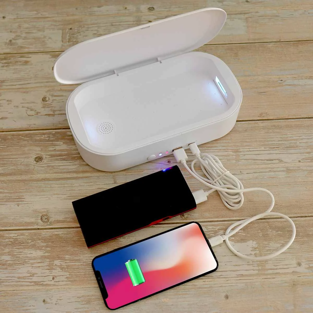 -Он может не только дезинфицировать мобильные телефоны, но и дезинфицировать мелкие предметы, такие как очки, ювелирные изделия, ключи, маски, часы и т. д.