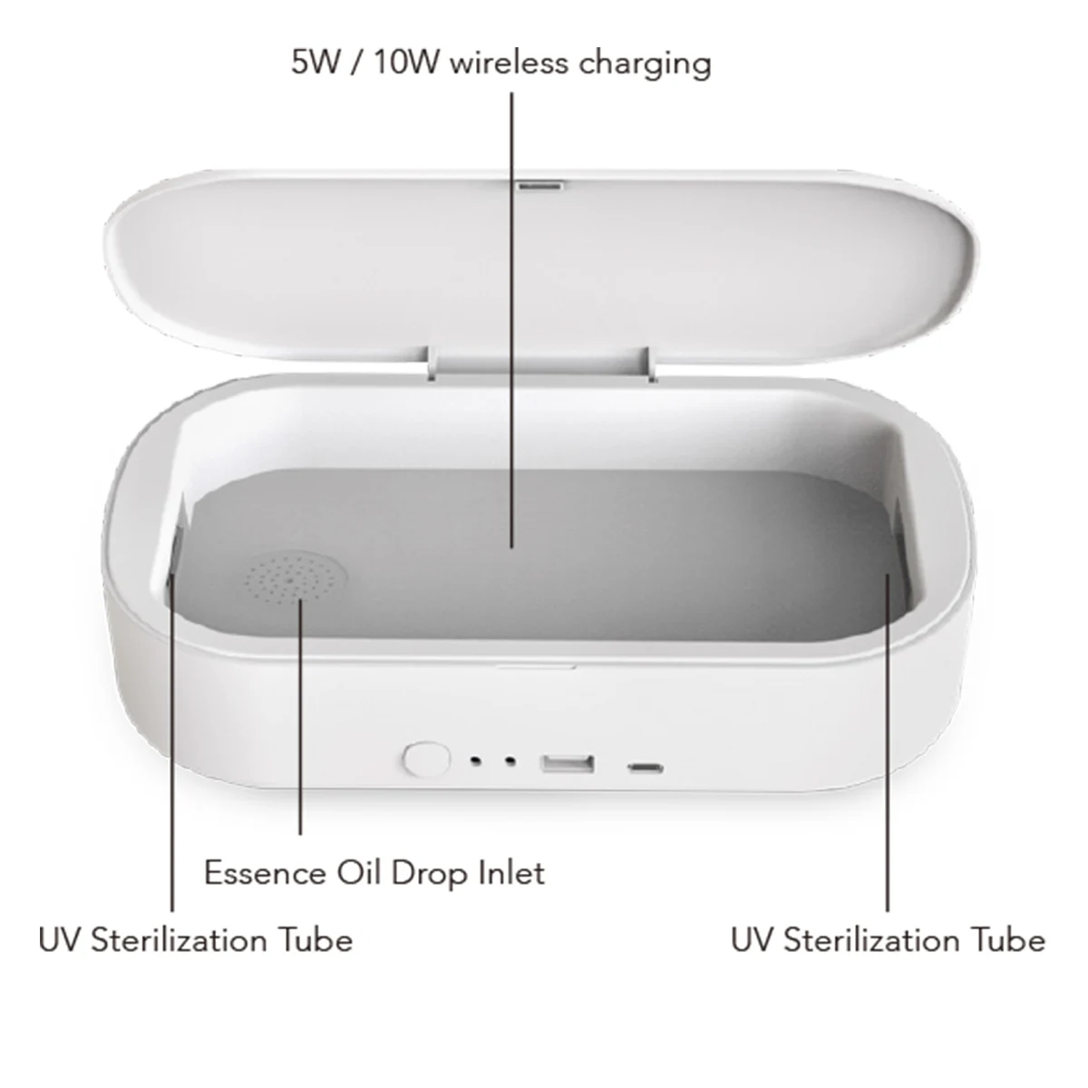 -Многофункциональность: 1. Уф стерилизация 2. Автоматическая стерилизация 3. Автоматическая ароматерапия 4. Мобильный телефон для зарядки 5. Дезинфекция нескольких объектов