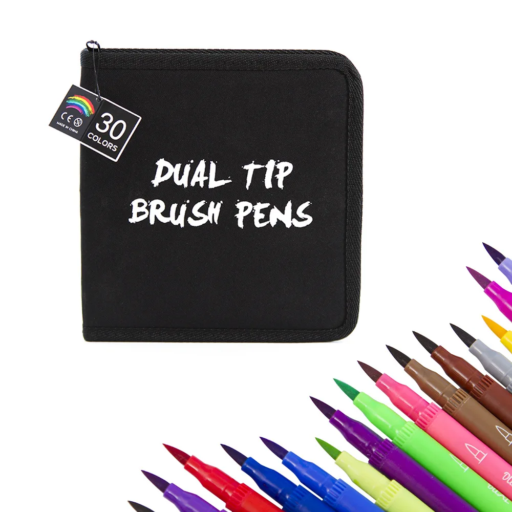 Набор с гибким наконечником кисти и тонким наконечником в одном маркере.