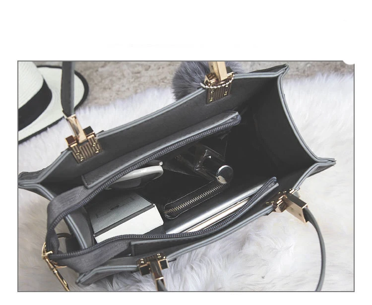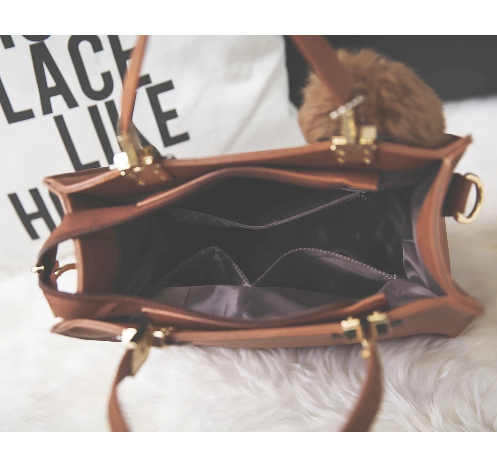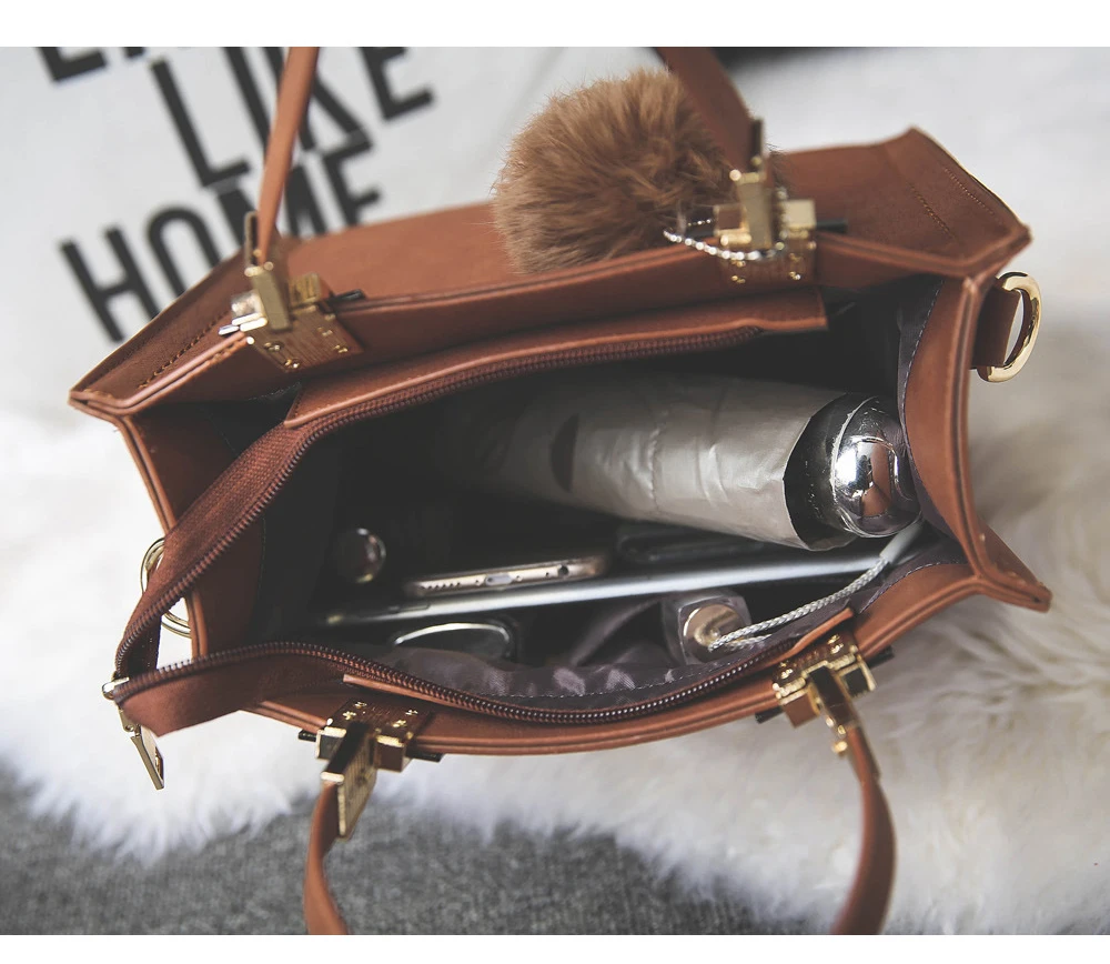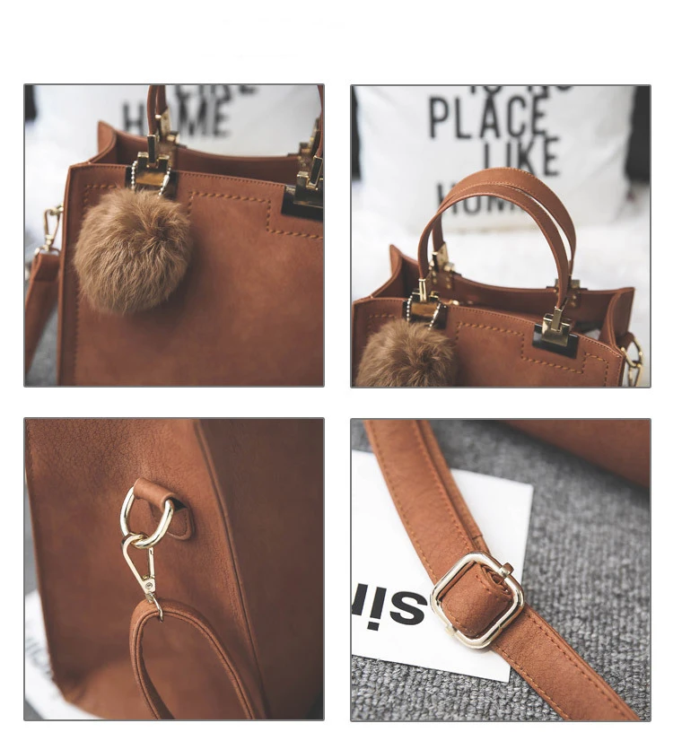 Новинка, хит продаж, Женская Повседневная Сумка-тоут, женская большая сумка через плечо, сумка-мессенджер, Высококачественная замшевая кожаная сумка с меховым помпоном