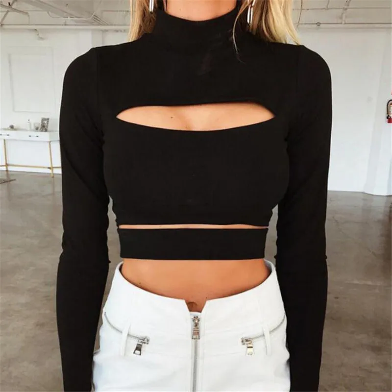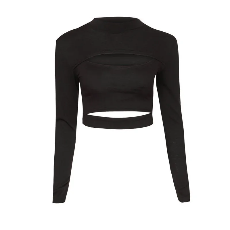 Отзывы о Женский укороченный свитер с длинным рукавом черный ажурный пуловер для клубов и