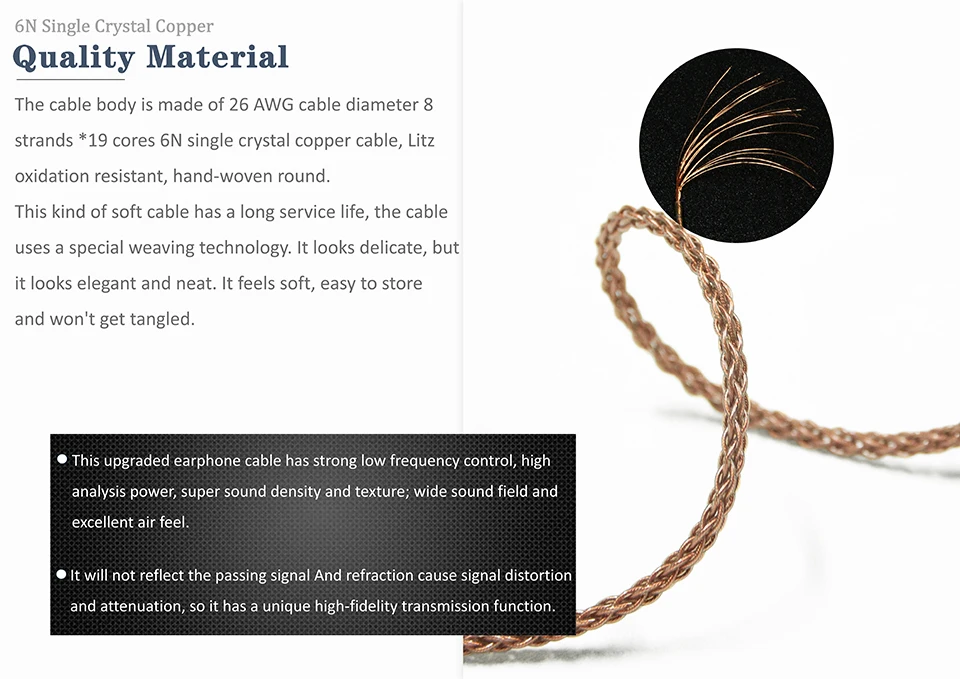 Отзывы о GUCraftsman 6N одинарный Кристалл Наушники с медным покрытием Сменные кабели для FitEar