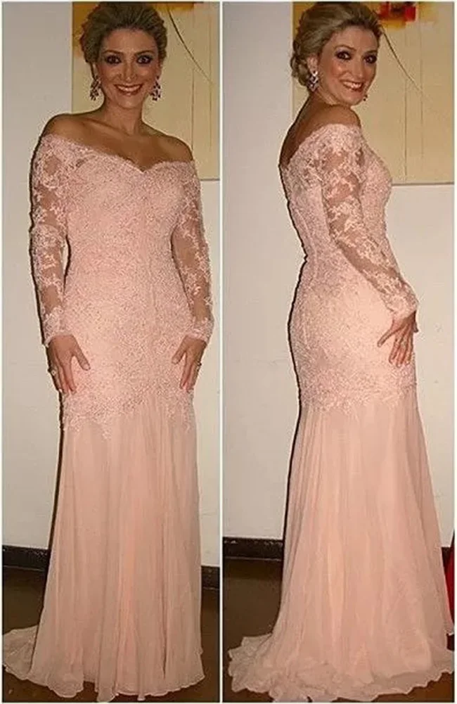 Купить Элегантное розовое платье для матери невесты с длинным рукавом открытыми