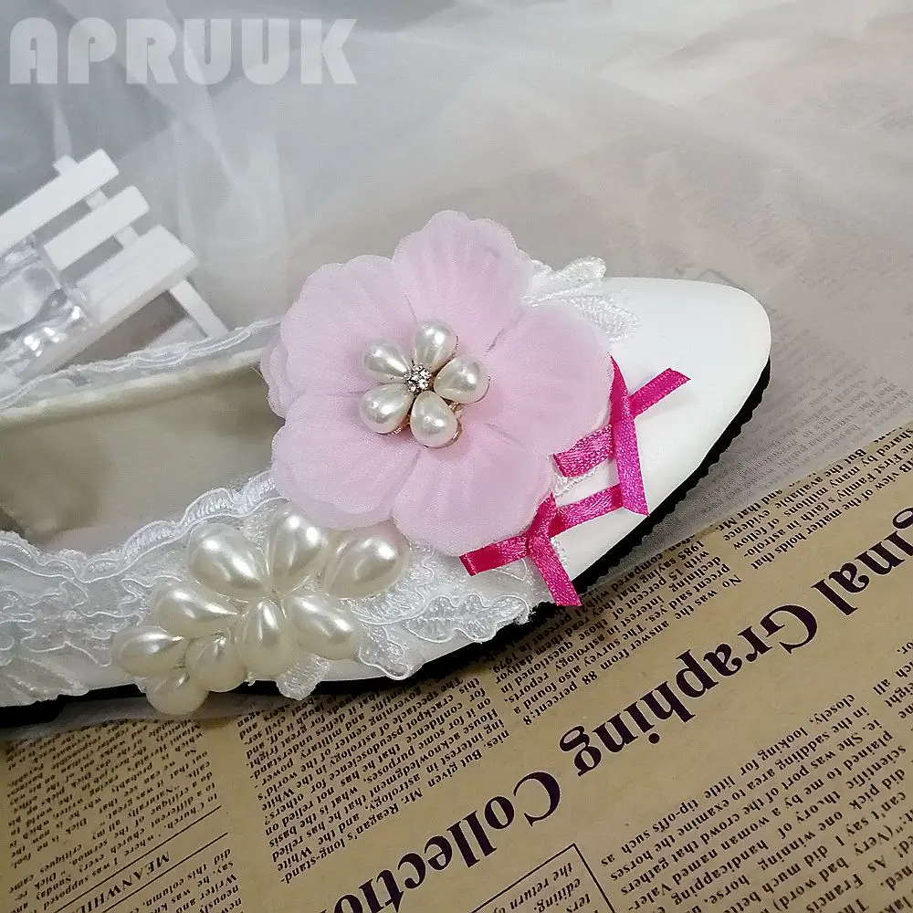 Белые розовые с украшениями из жемчужин Туфли цветочными для невесты свадебные - купить