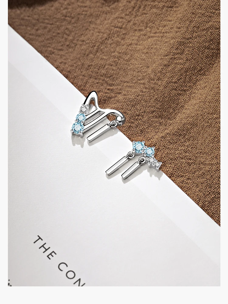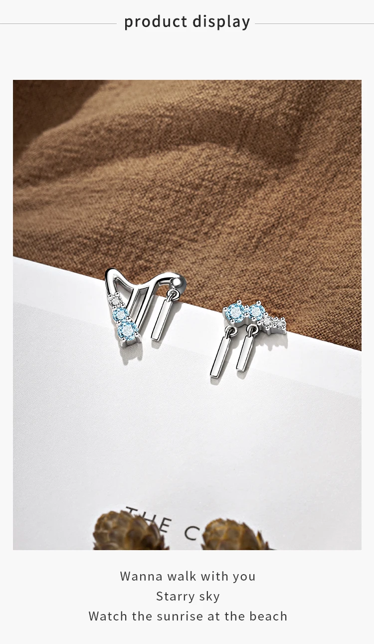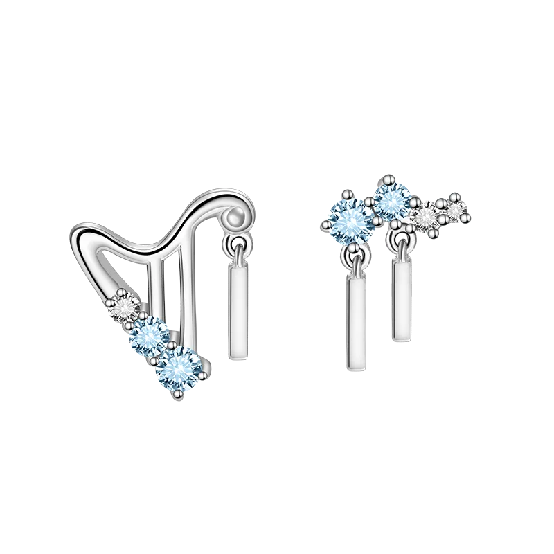 1-3-layer Solid real 925 silver, keep sunshine for ta long time, comfortable skin application exquisite workmanship 2- Design from harp, asymmetrical personality 3- Delicate inlayed zircon, gradual change from white to blue, sparkling, stylish design