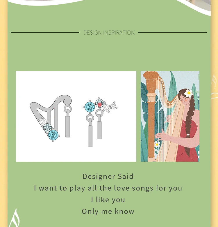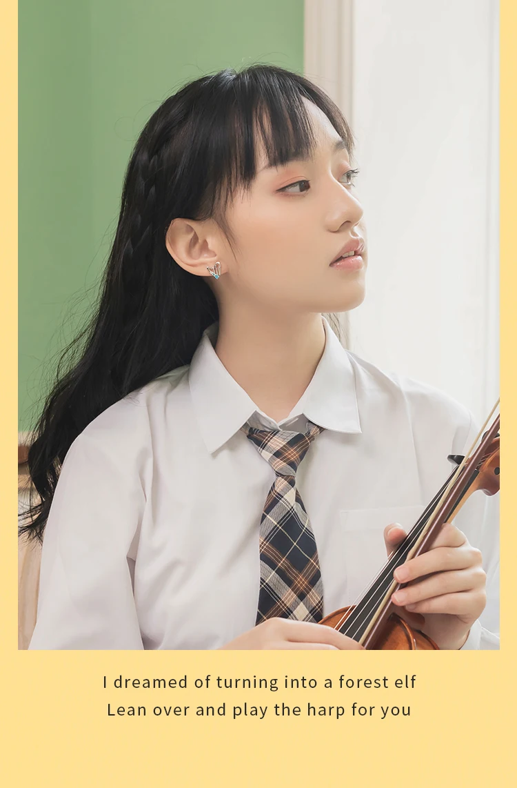 The idea comes from a picture of an elf girl playing a harp for a loved one Feeling that the girl is full of secret love and longing for her lover Then he made this picture into ear studs I dreamed of turning into a forest elf Lean over and play the harp for you Each note represents my longing for you Wanna walk with you Starry sky Watch the sunrise at the beach
