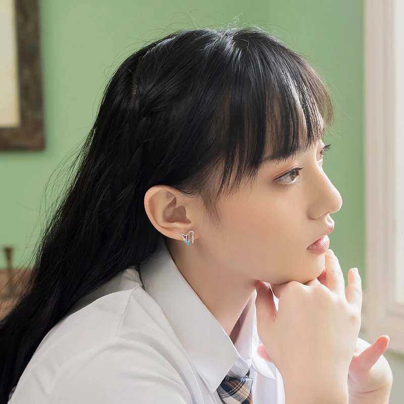 Thaya 925 Sterling Silver Harp Design Stud Earrings Light Blue Crystal For Women Sterling Silver Jewelry Gift Fine Jewerlry