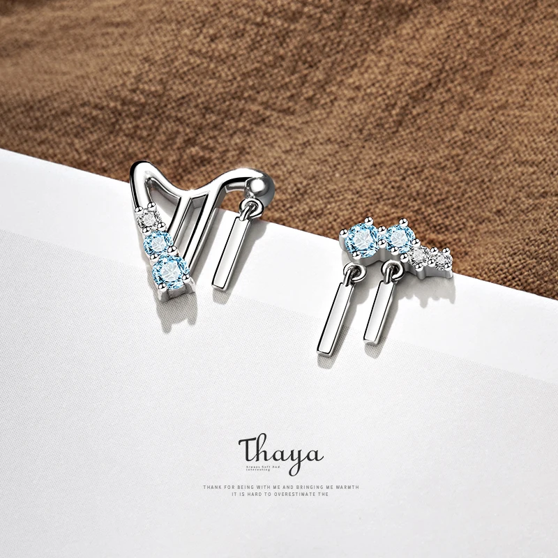 Купить Thaya 925 Silver Earrings Stud Harp Design Light Blue Crystal For Women Sterling Jewelry Gift Fine Jewerlry |