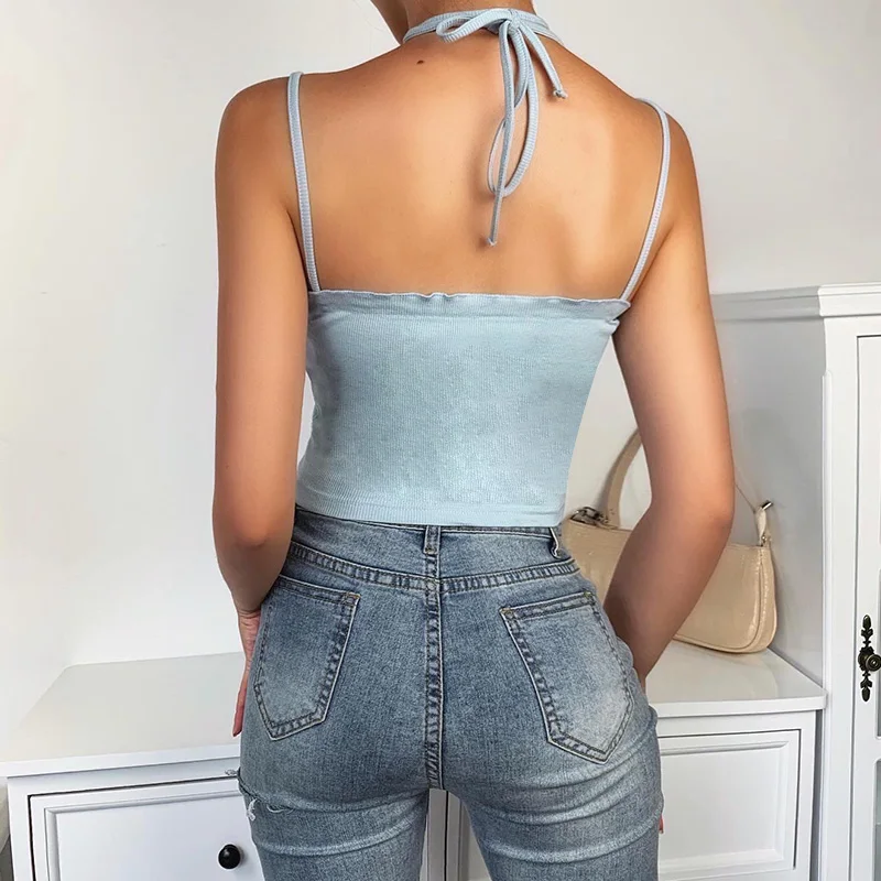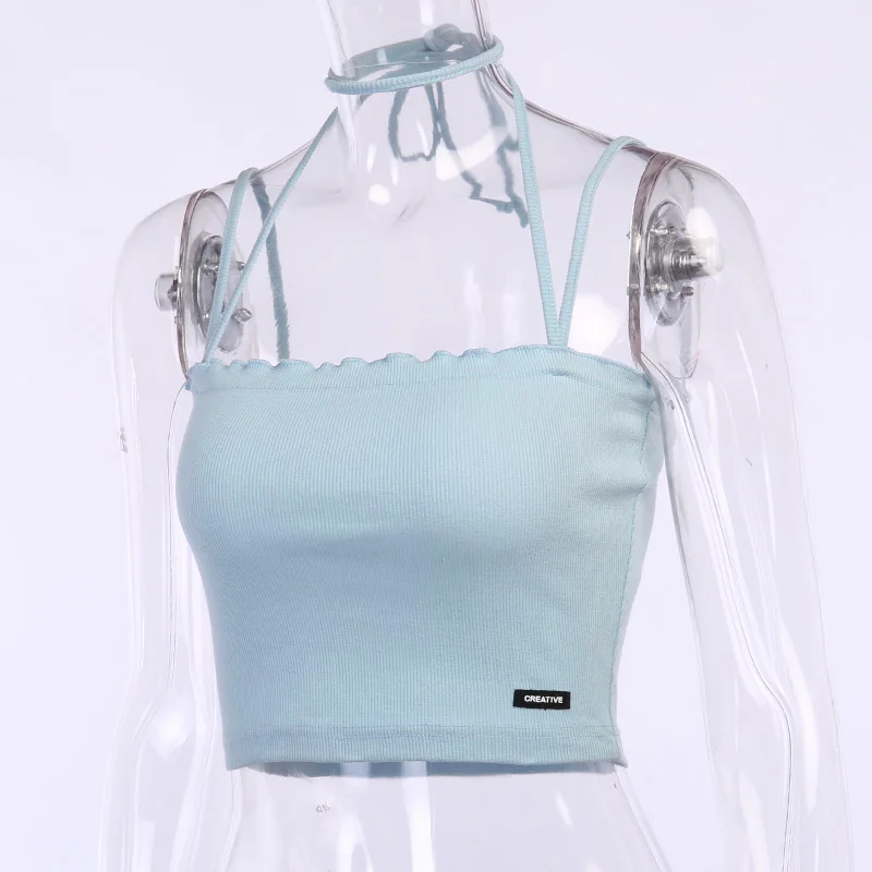 Купить LVINMW сексуальный короткий топ на бретельках без рукавов с открытой спиной и