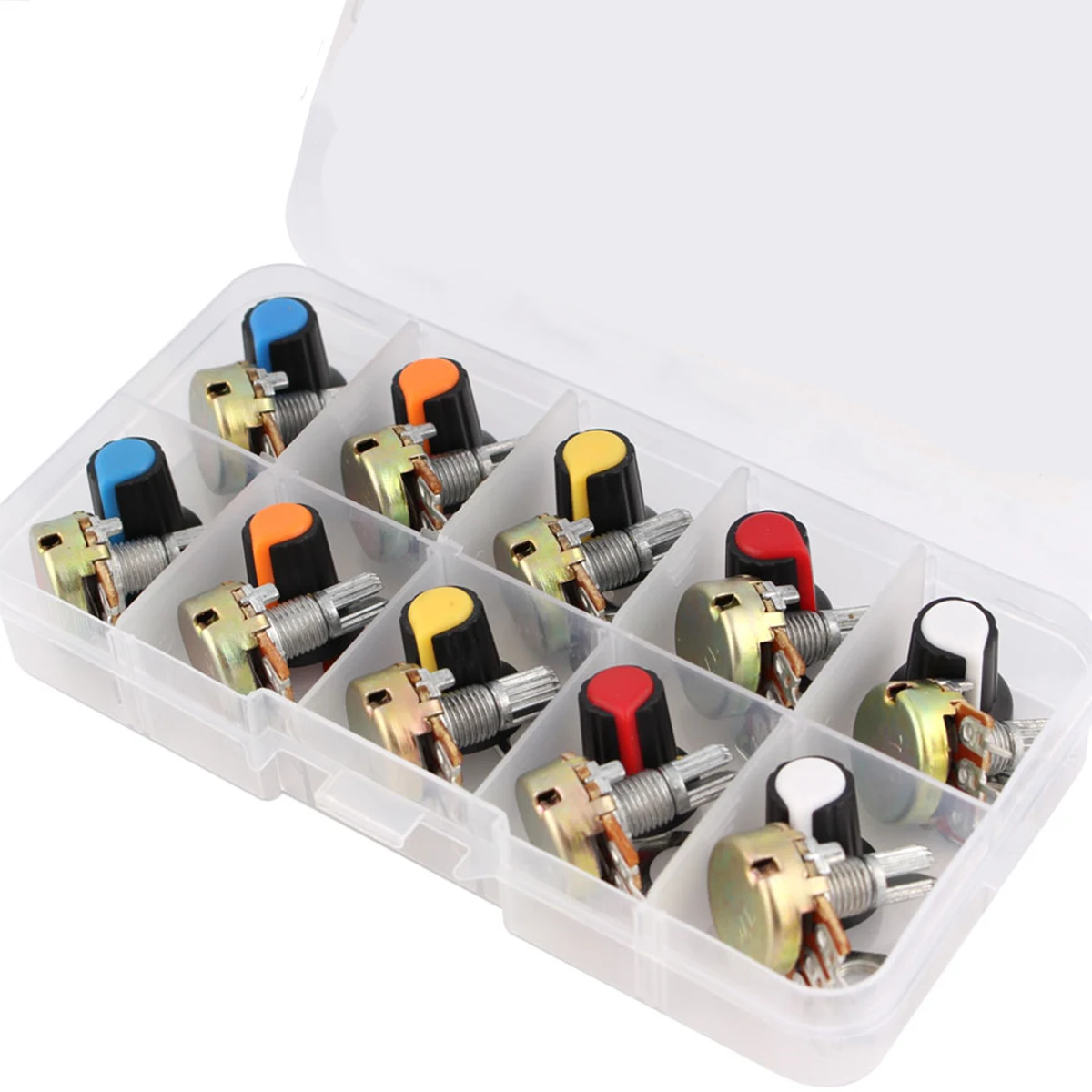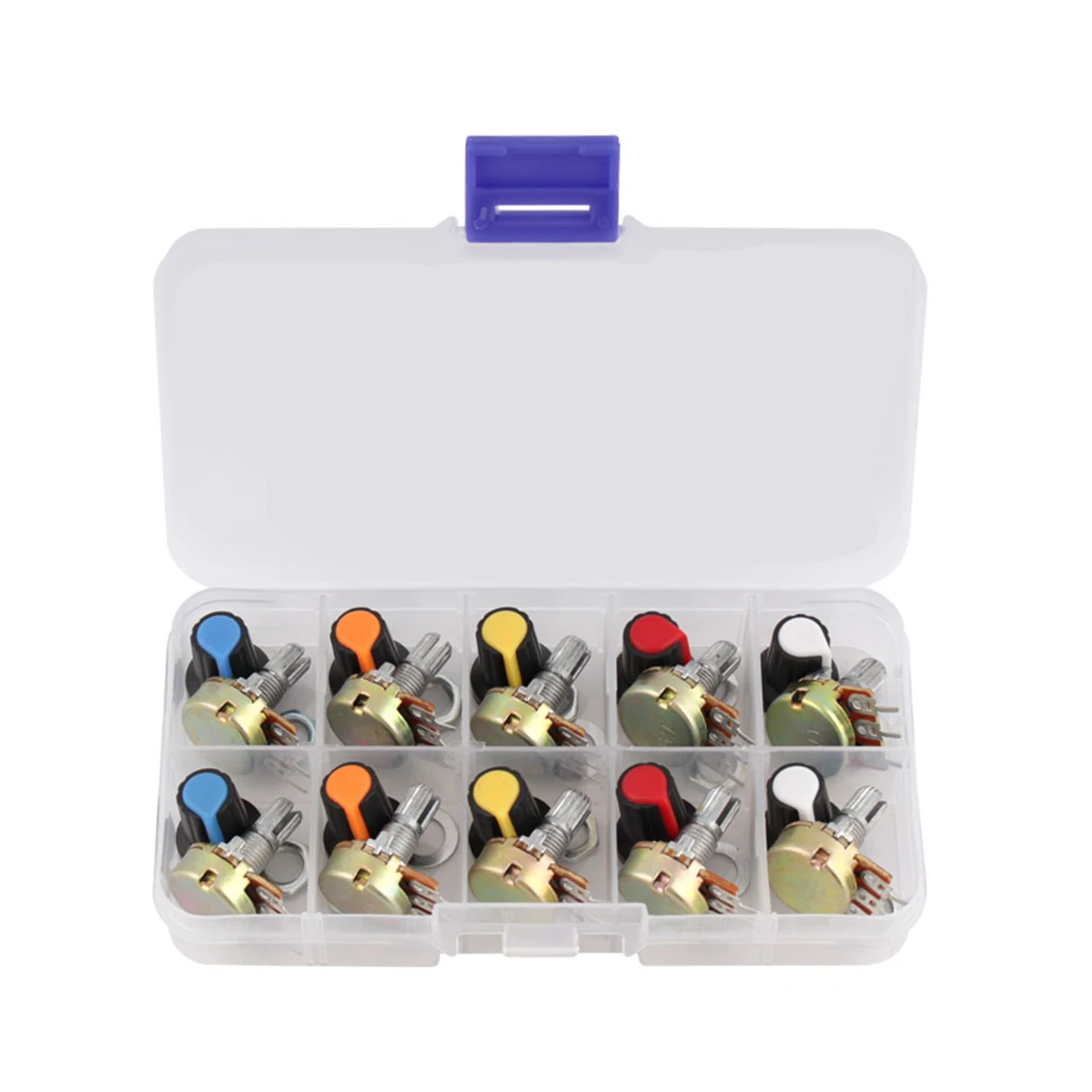 WH148 Potentiometer Kit B1K 2K 5K 10K 20K 50K 100K 500K 1M 15mm Linear Taper Rotary Resistor Set 3pin With Cap Электронные - купить