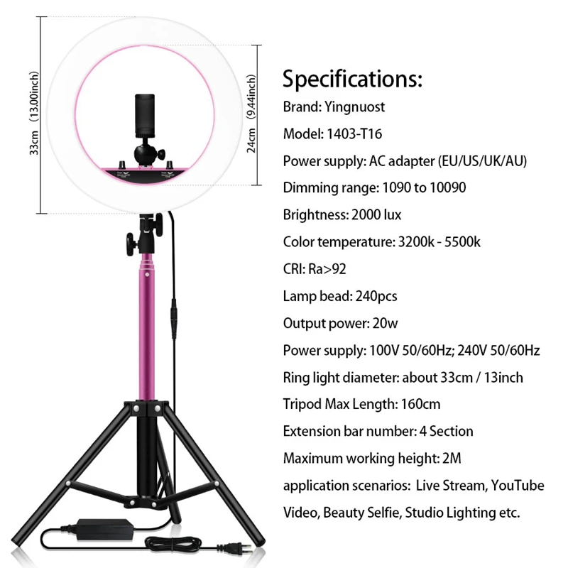 Отзывы о 14 дюймовый Диммируемый 5500K светодиодный кольцевой светильник с 1 6 м штатив Трипод