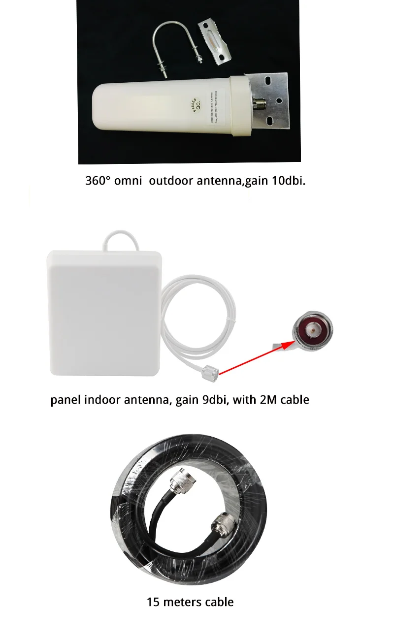1. Интеллектуальный ЖК-дисплей показывает состояние сигнала в реальном времени 2. Покрытие: более 200-500 кв. М без барьера 3. Работа для: GSM 2G 900 МГц (полоса 8)/ WCDMA 3G 2100 МГц полоса 1 / DCS 4G 1800 МГц (полоса 3) 4. Отличная крышка, легко устанавливается 5. Весь комплект с наружной антенной, внутренней антенной, кабелем 15 метров