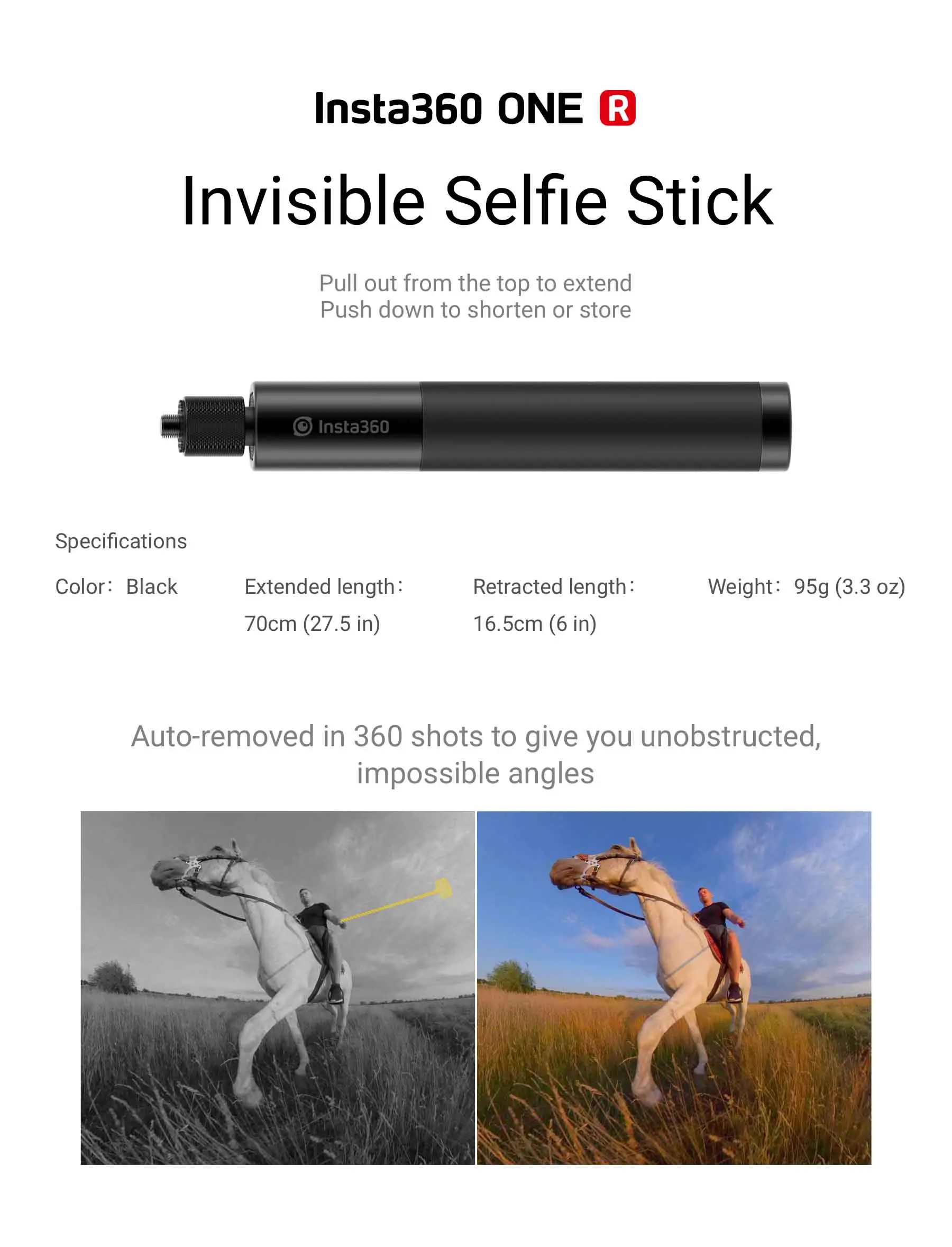 1、Auto-removed in 360 shots to give you unobstructed, impossible angles.