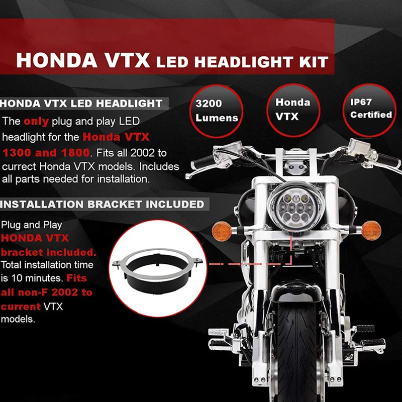 Отзывы о Для мотоциклетных фар Honda VTX 5 75 дюйма светодиодный налобный фонарь с кронштейнами