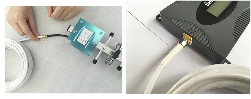 Шаг 2. Подсоединить внешнюю антенну к усилитель сигнала (разъем BTS) с кабелем.