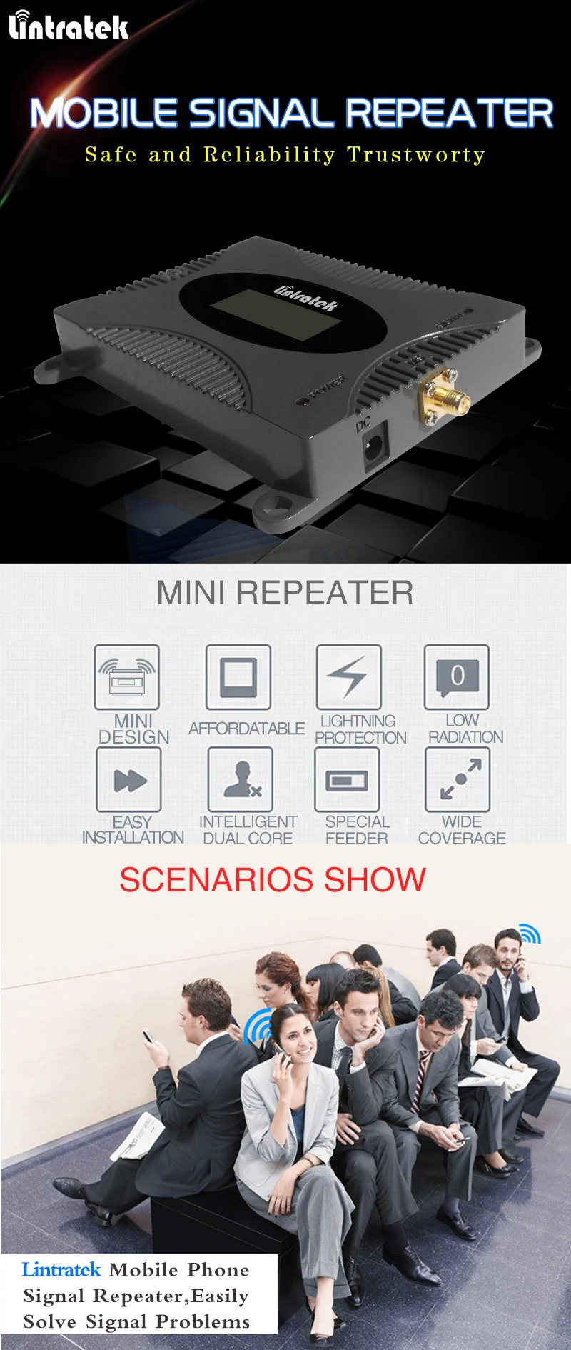 1. Полоса 4G 1800 МГц 3. 2. Возможно улучшение GSM 1800 МГц. (Не для GSM 900) 3. Усиление 65 дБи, выход 16 дБм 4. Жк-дисплей, показывает прочность сигнала в режиме реального времени. 5. Мини Размер для домашнего использования 6. Очень конкурентоспособная цена 7. Полный комплект с антенной и кабелем 8. Поддержка до 30 человек онлайн и 2 г 1800 вызовов в то же время 9. Корпус охлаждения, стабильная производительность