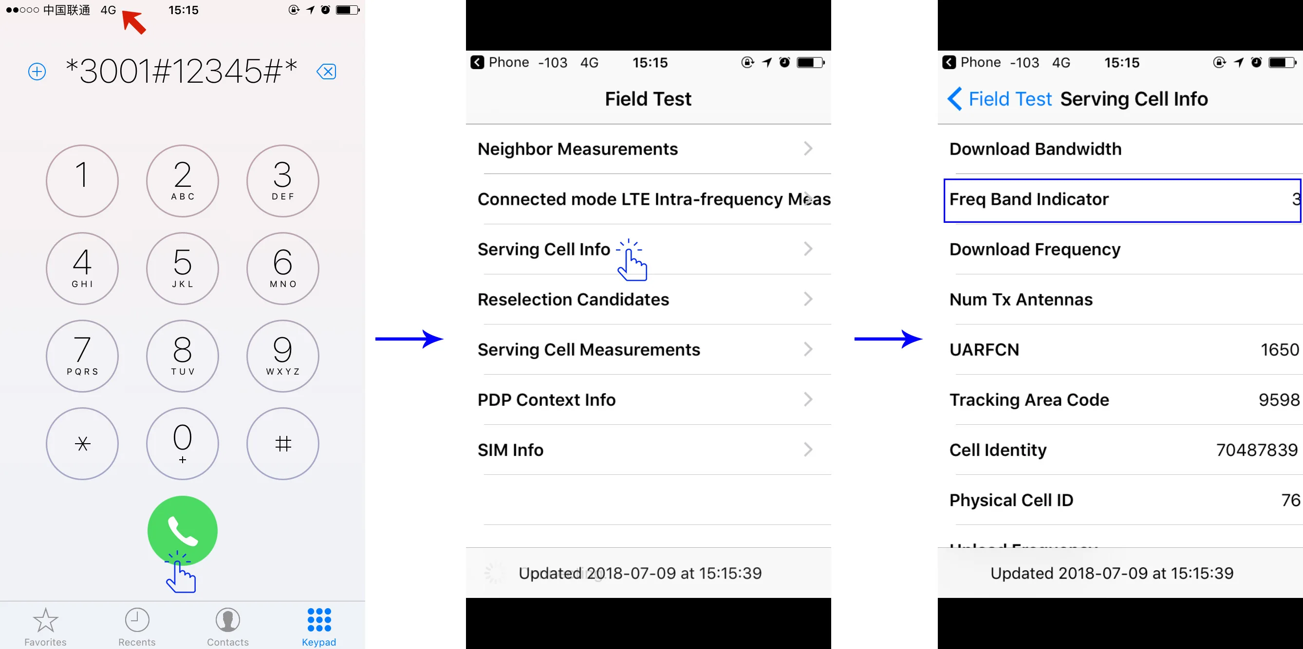 Два способа проверки частоты (A) выход, выключите WIFI и включите 2G/3G/4G (сигнал, который вы можете улучшать) Iphone: надень это: * 3001 #12345 # * (как на фото)